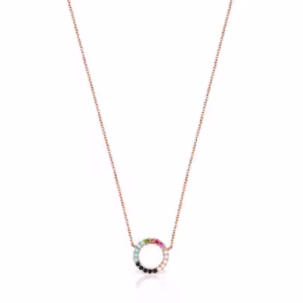 Glory Necklace in Silver Vermeil with five multicolor Gemstones 79/100″ motifs. 17 18/25
