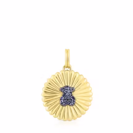 Silver vermeil Medallion with bear and iolite Iris Motif