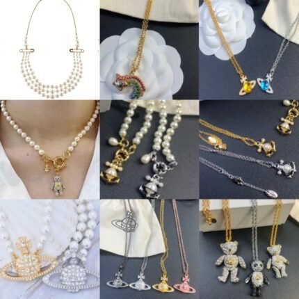 2024 New Exquisite Gold Necklace Silver Bear Inlaid Diamond Pendant