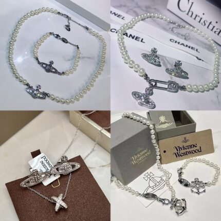 2024 New Exquisite Pearl Chain Saturn Diamond Set Set