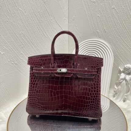✨✨Birkin Platinum 25cm✨✨Bordeaux Burgundy????➕Three Glossy Crocodile????Belly Noblewoman Temperament Burgundy’s deep fragrance is the best interpretation of elegance ????