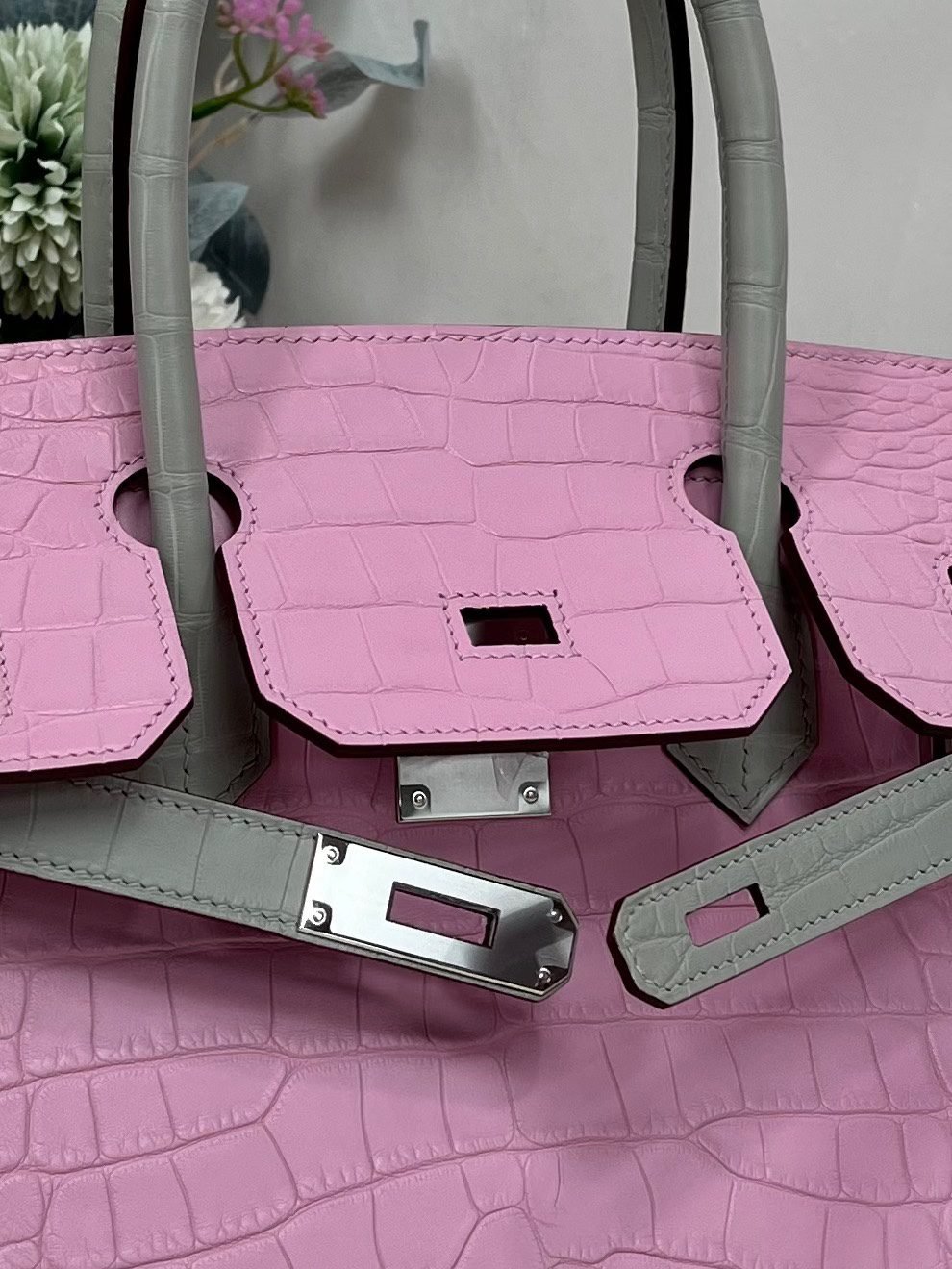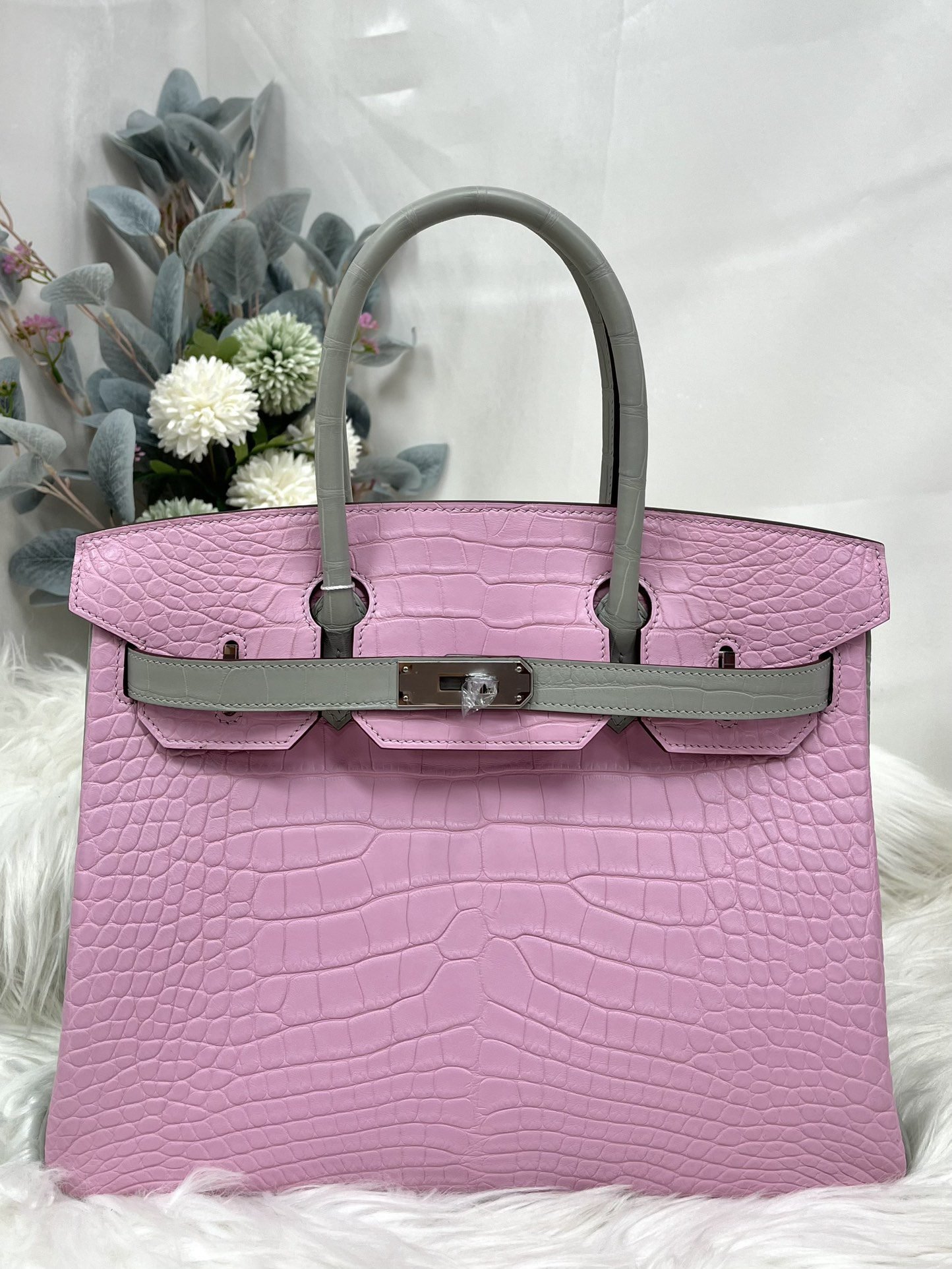 Home BAGS Top Crocodile Bags ✨✨Birkin Platinum 30cm✨✨✨Silver Buckle 3Q Cherry Blossom Pink Pieces 80 Pearl Gray ➕Three Americas???? Leather Understated elegance, grey color with the popular light colors, is really gentle, who can not resist! ????