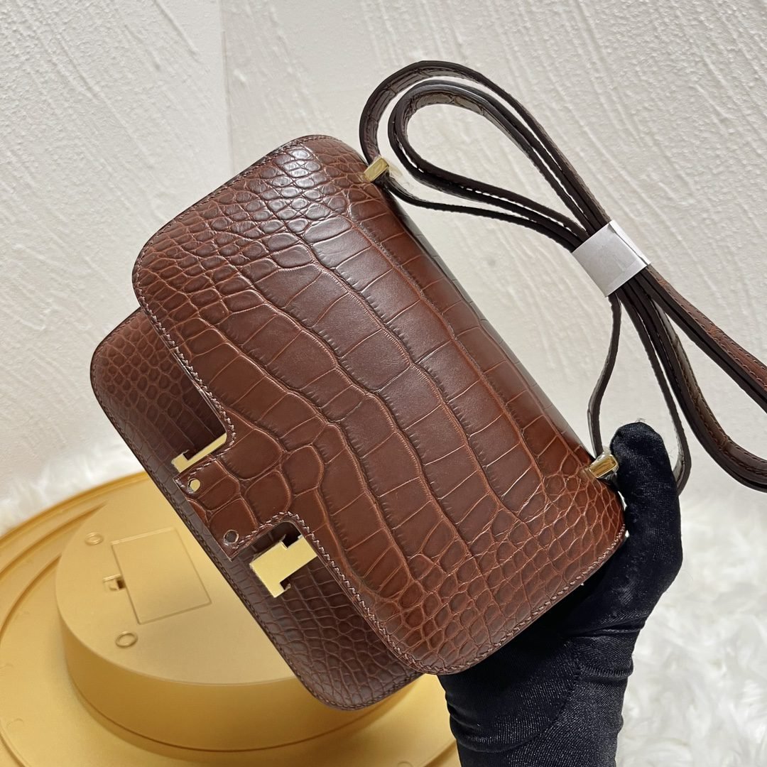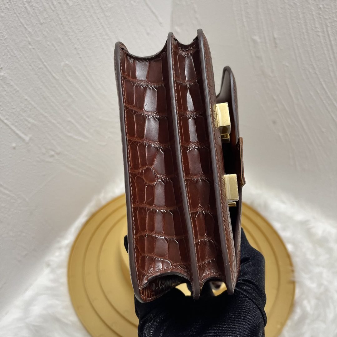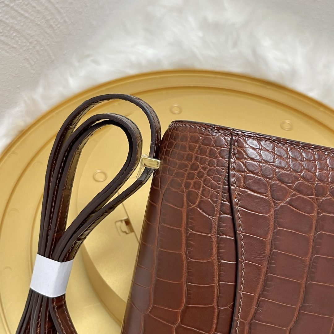 Home BAGS Top Crocodile Bags ✨✨Constance Flight Attendant 19cm✨✨✨Honey Brown ➕Matte Americas Water Dye Crocodile???? Gold Buckle very atmospheric color, sisters can be rushed????