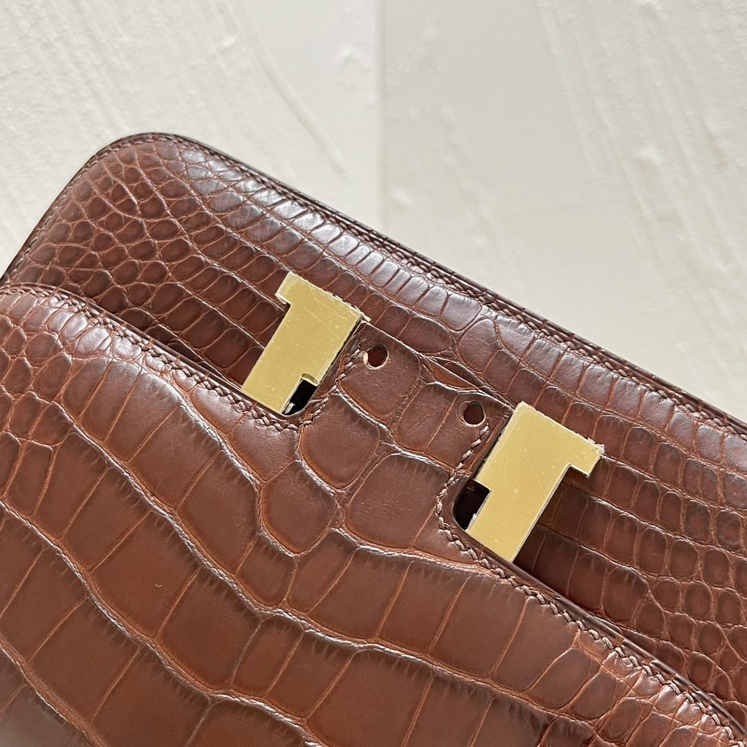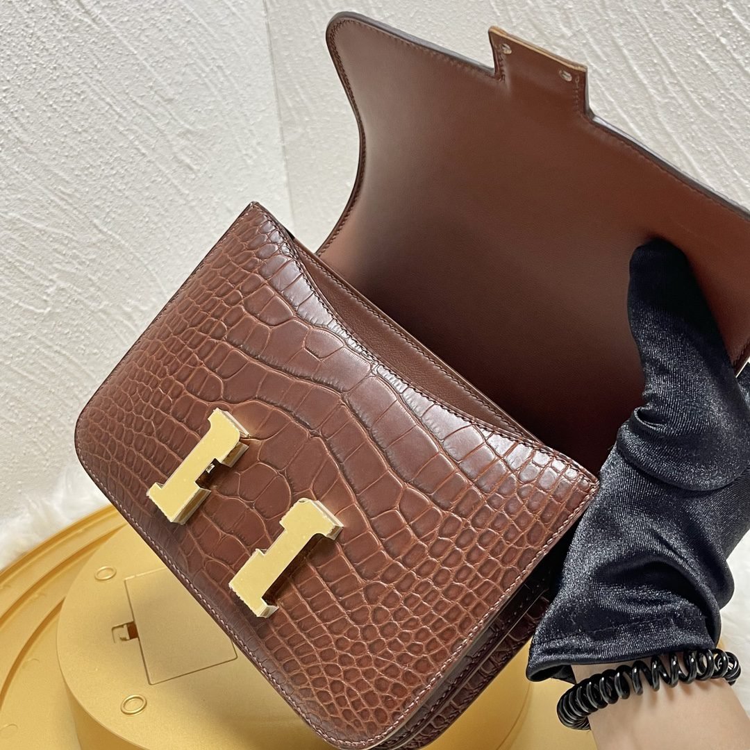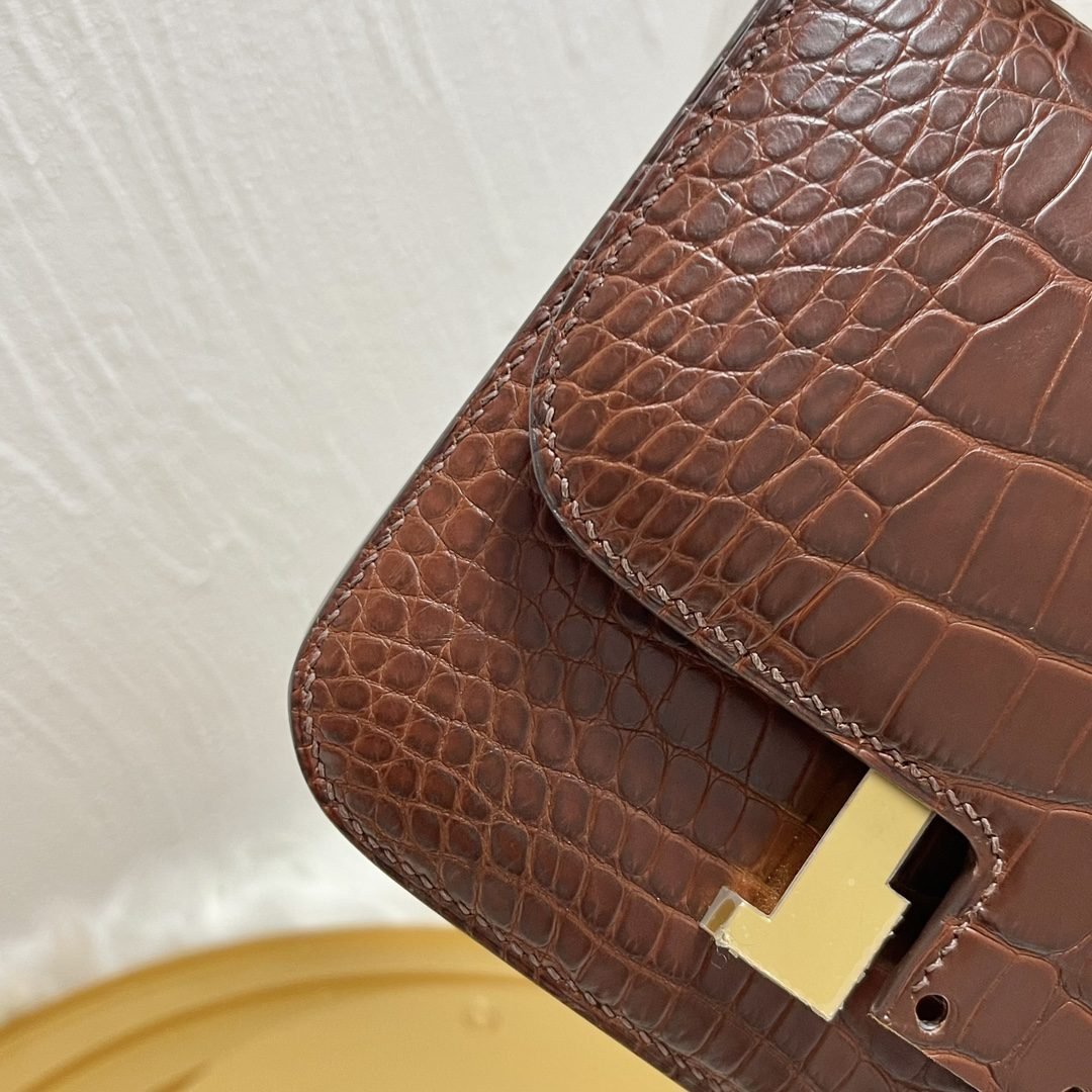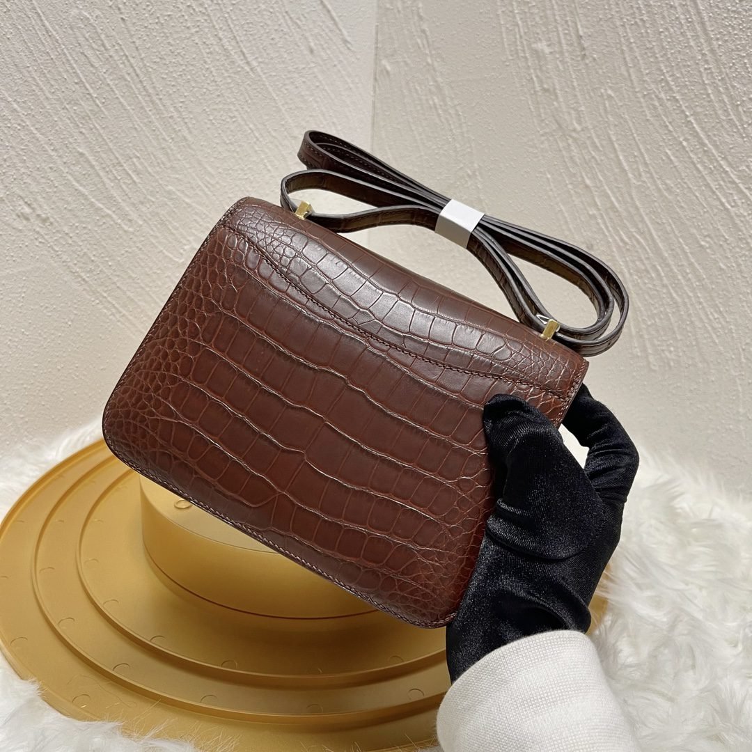 Home BAGS Top Crocodile Bags ✨✨Constance Flight Attendant 19cm✨✨✨Honey Brown ➕Matte Americas Water Dye Crocodile???? Gold Buckle very atmospheric color, sisters can be rushed????