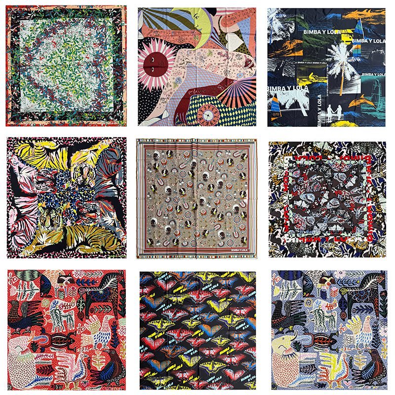 2025 new Spanish niche women’s various personalized printed pattern scarves and large square scarves, suitable for daily travel and gatherings