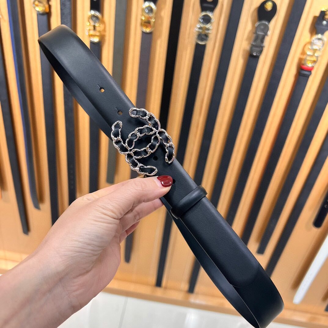 Chanel Silver Double C-Ring Buckle Black Belt Simple, Fashionable, Noble, Elegant