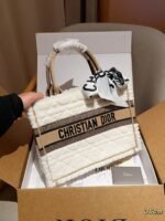 Home BAGS DIOR-BAG A white tote bag with lamb fur and rattan grid, which I have come to know.SIZE:36cm