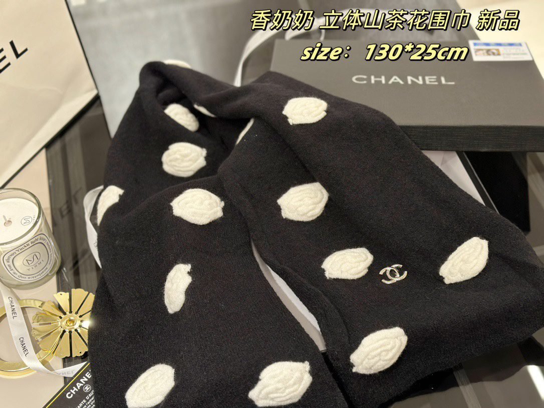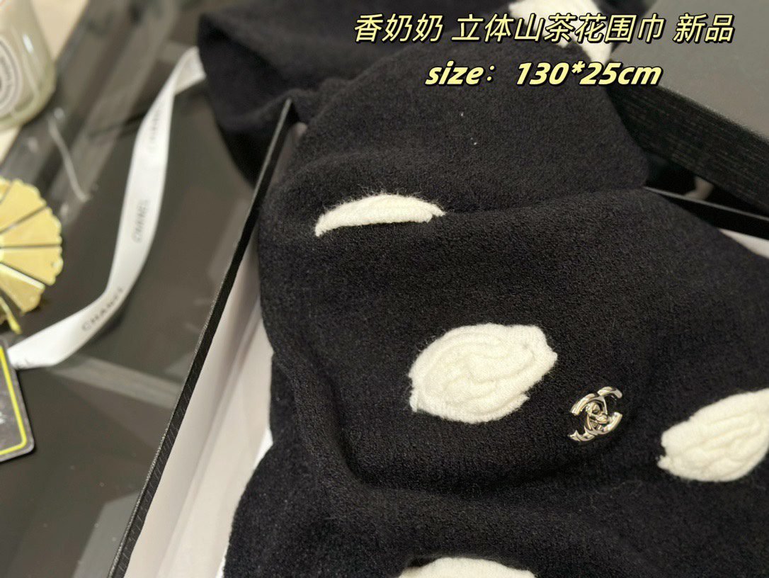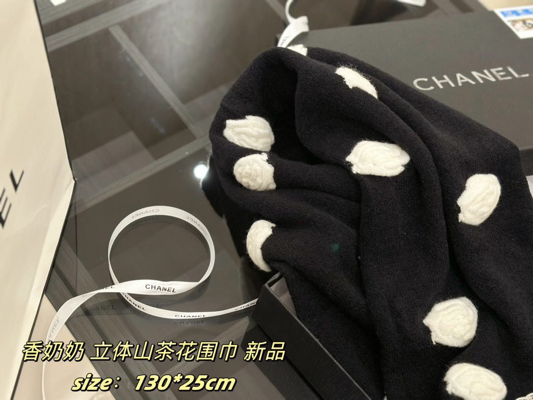 All come with ribbon sealed gift boxes ???? Xiaoxiang’s new three-dimensional camellia scarf , cashmere quality ,Size: 130 * 25cm