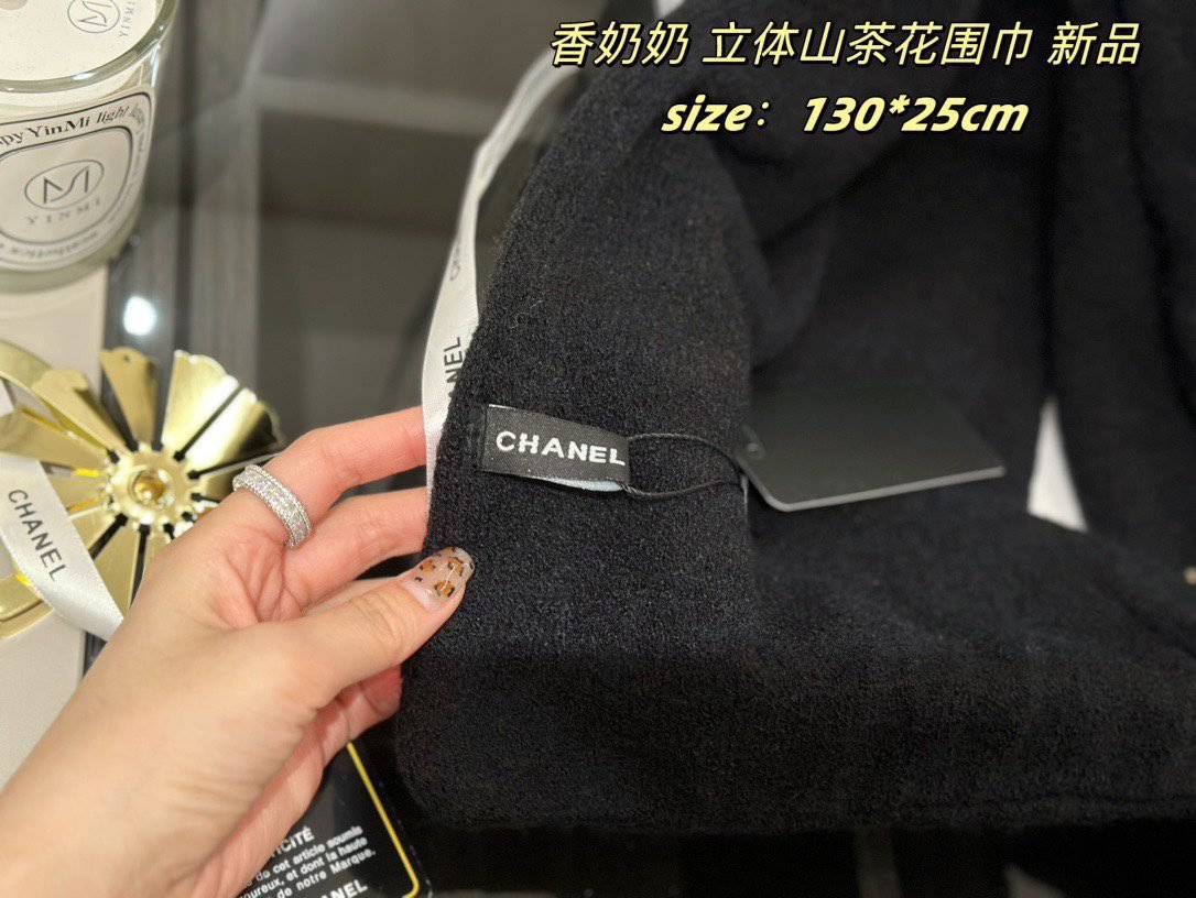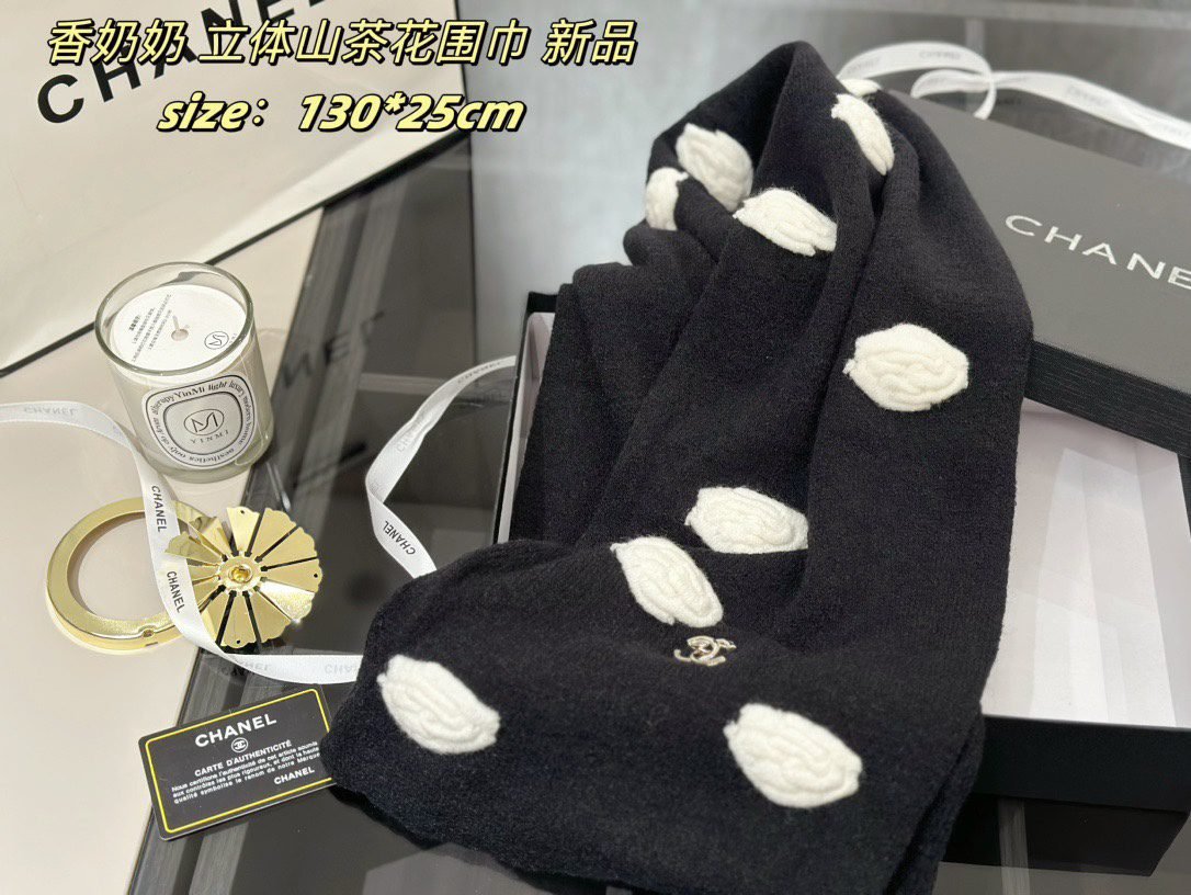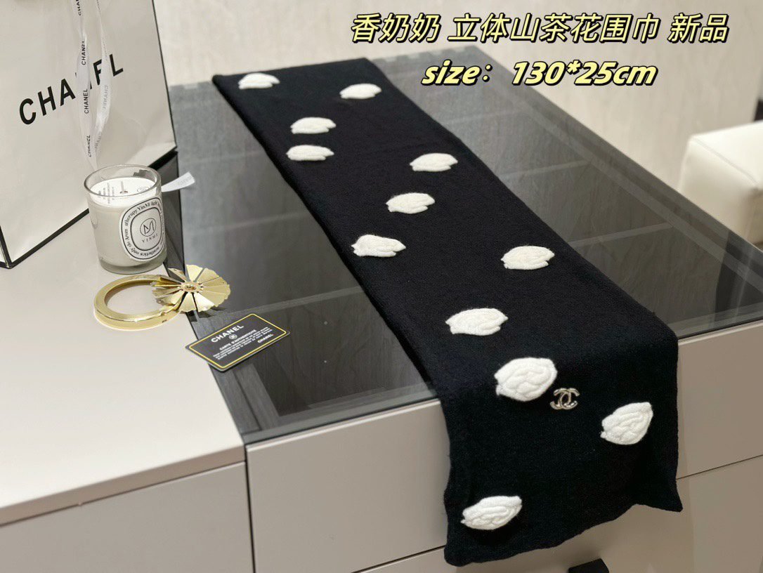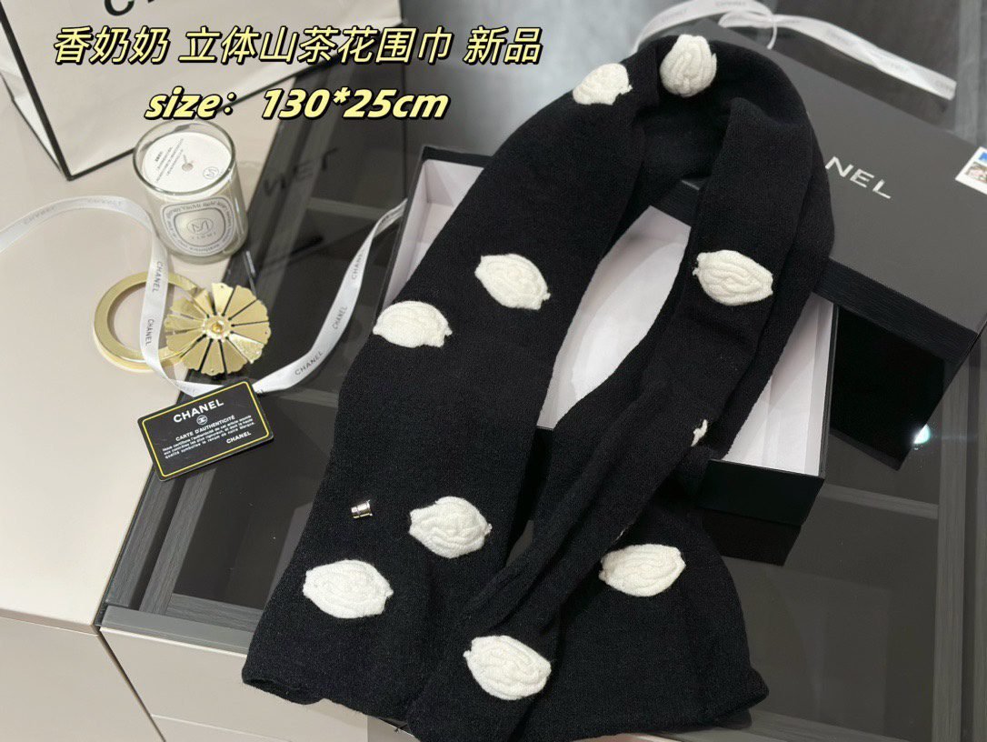 All come with ribbon sealed gift boxes ???? Xiaoxiang’s new three-dimensional camellia scarf , cashmere quality ,Size: 130 * 25cm