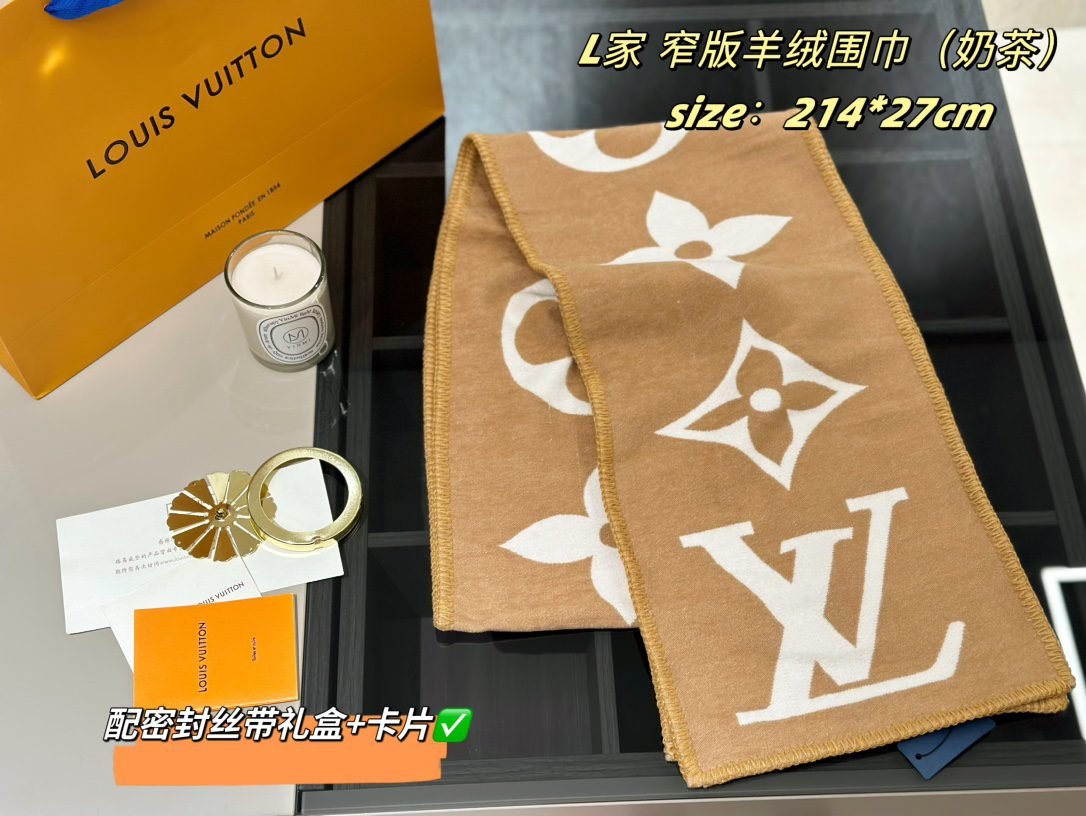 All of these come with sealed ribbon gift boxes ????   Soft LV cashmere narrow scarf, long and thick! Size: 214 * 27cm