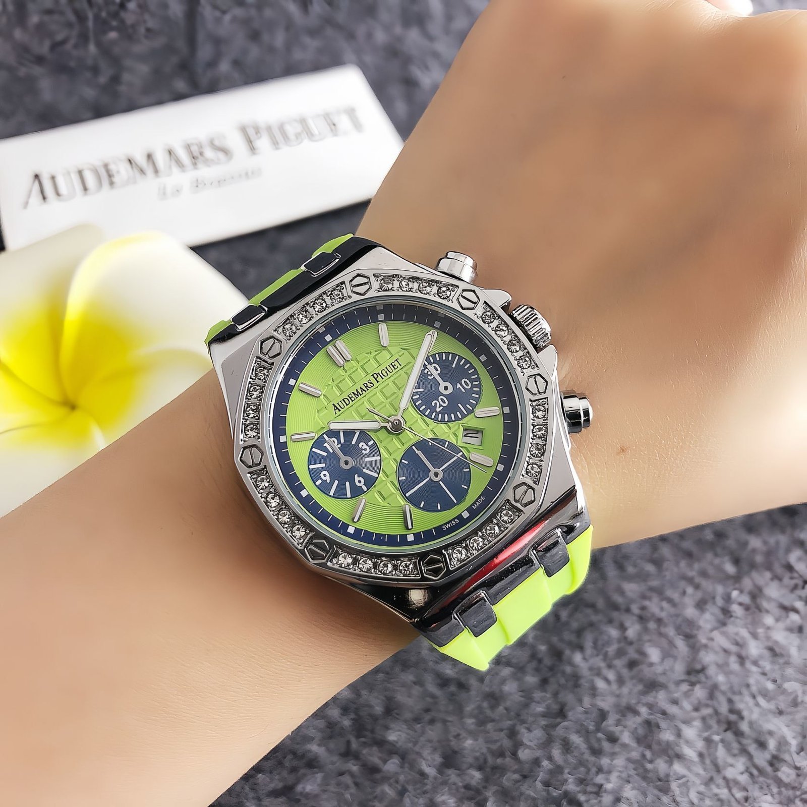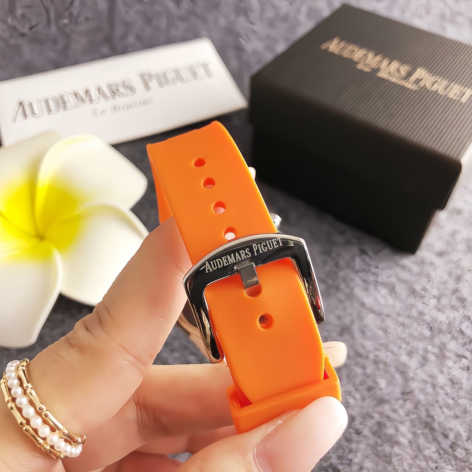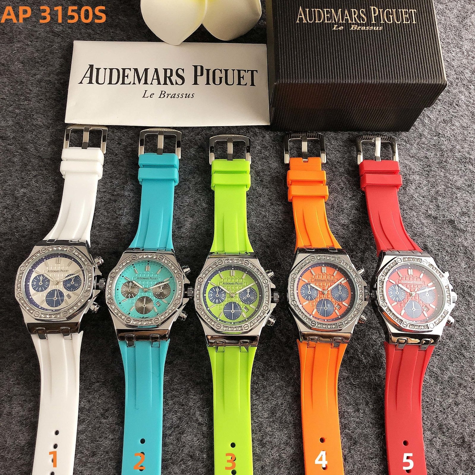 Audemars Piguet AP 3150S series watches blend bold sportiness with opulent detailing. Featuring the iconic Royal Oak octagonal case, chronograph dials, sparkling diamond accents, and vibrant silicone straps in hues like white, turquoise, neon green, orange, and red, they embody AP’s legacy of innovative design and high – end craftsmanship. Perfect for those who crave distinctive style with a dynamic edge, these timepieces add a splash of colorful luxury to any ensemble, whether for athletic pursuits or fashion – forward everyday looks.