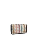 Composed of colored stripes and letters, with black synthetic leather edges.Zipper closure. Open interior pocket. Fixed handles and adjustable and removable crossbody strap. Measurements:20*13*7cm