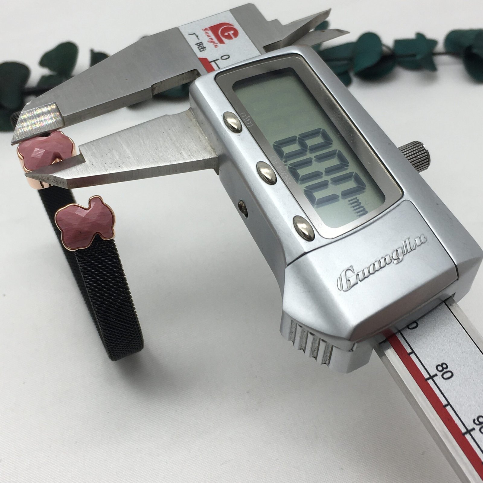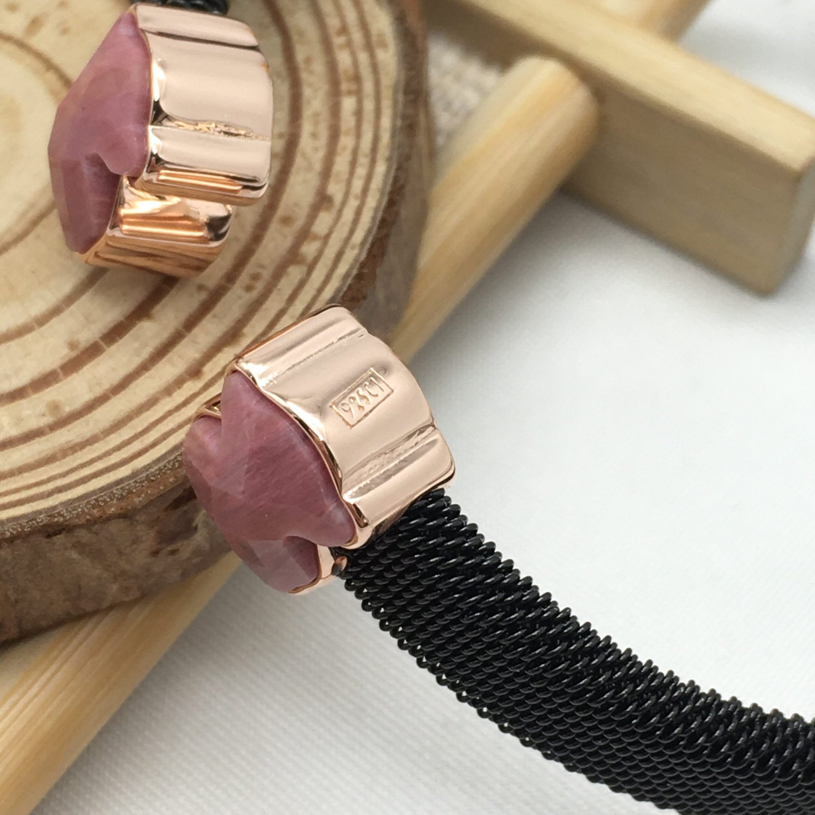 Be the first to review “Black IP Steel Mesh Color Bracelet with Rhodonite” Cancel reply