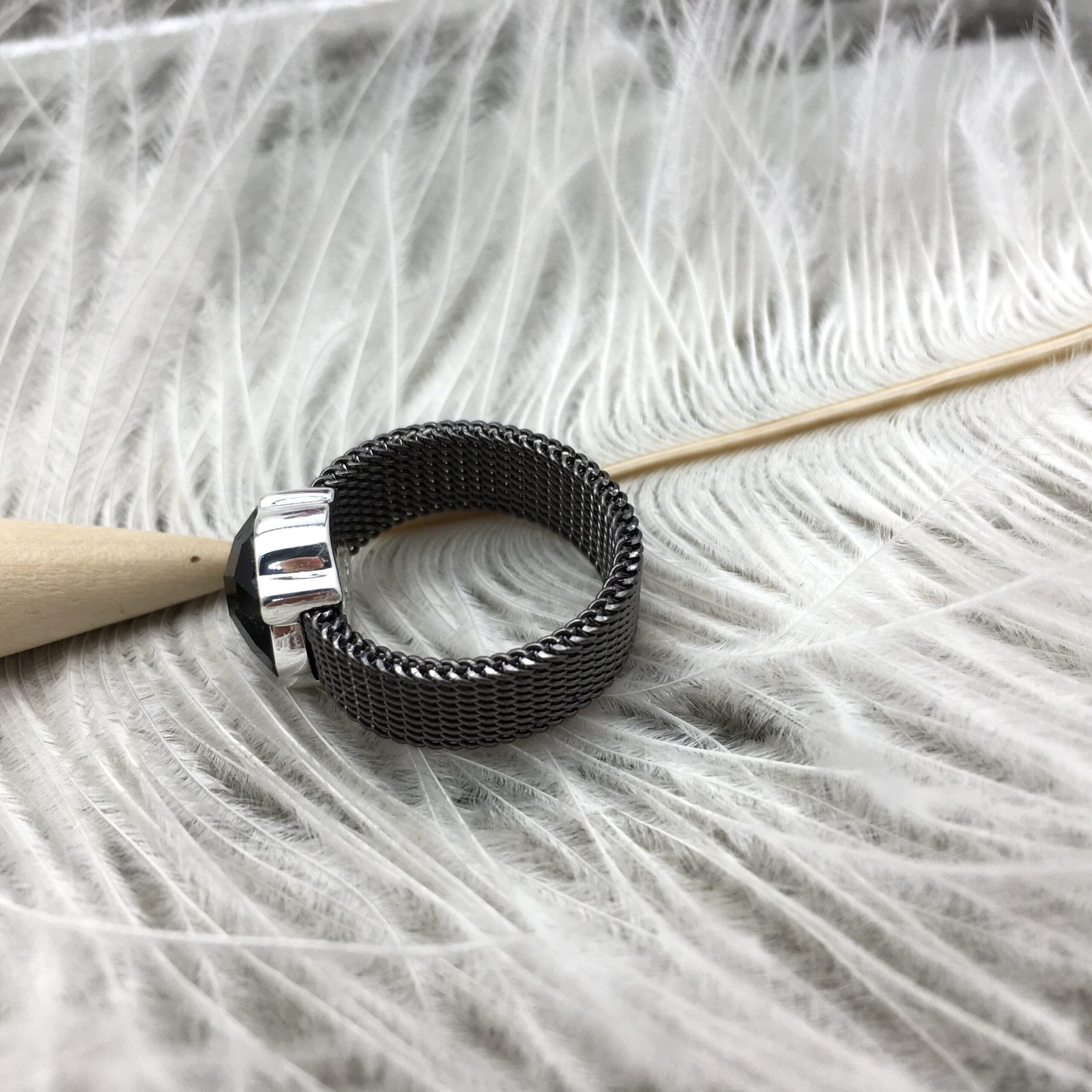 Be the first to review “Black IP Steel Mesh Color Ring with Onyx Bear motif” Cancel reply