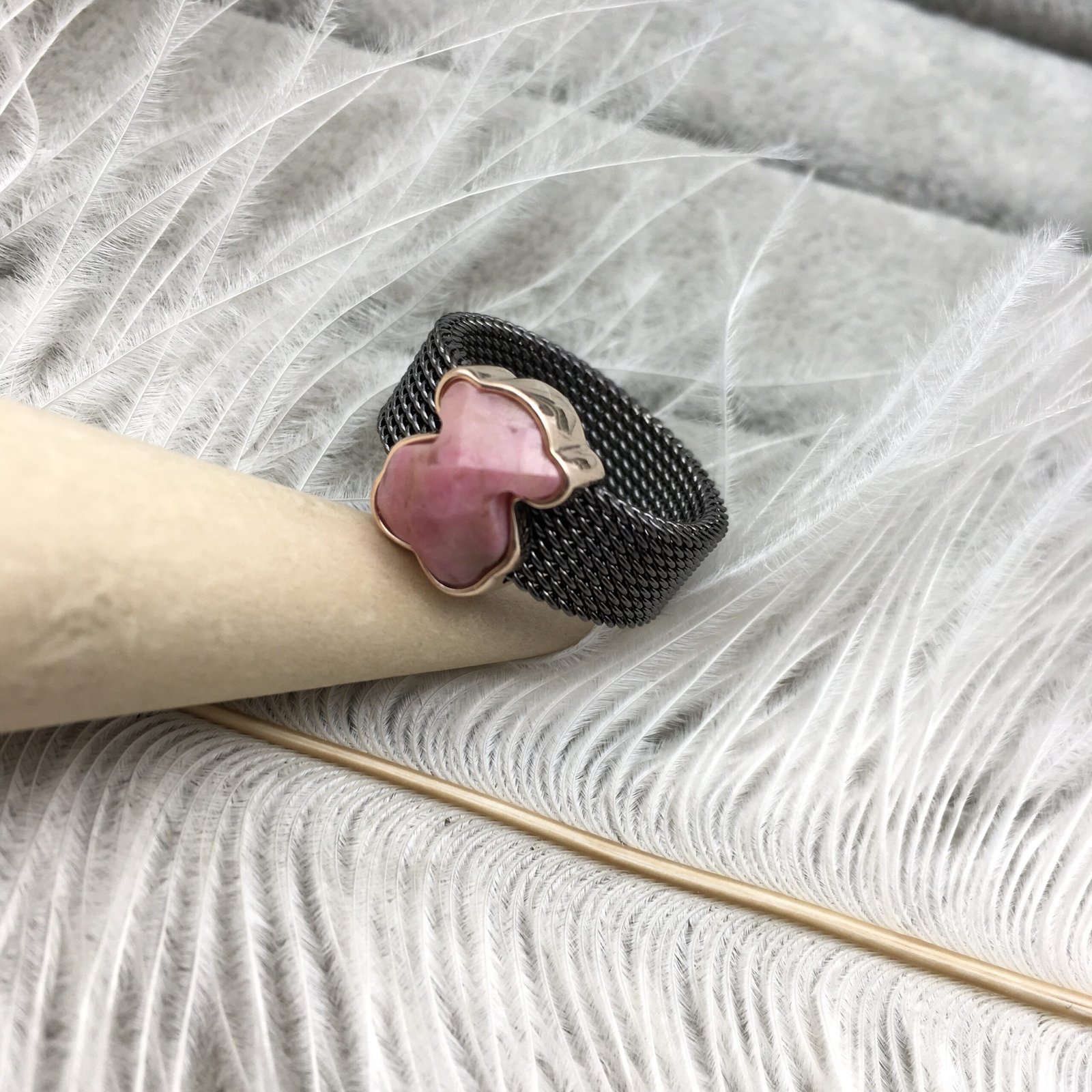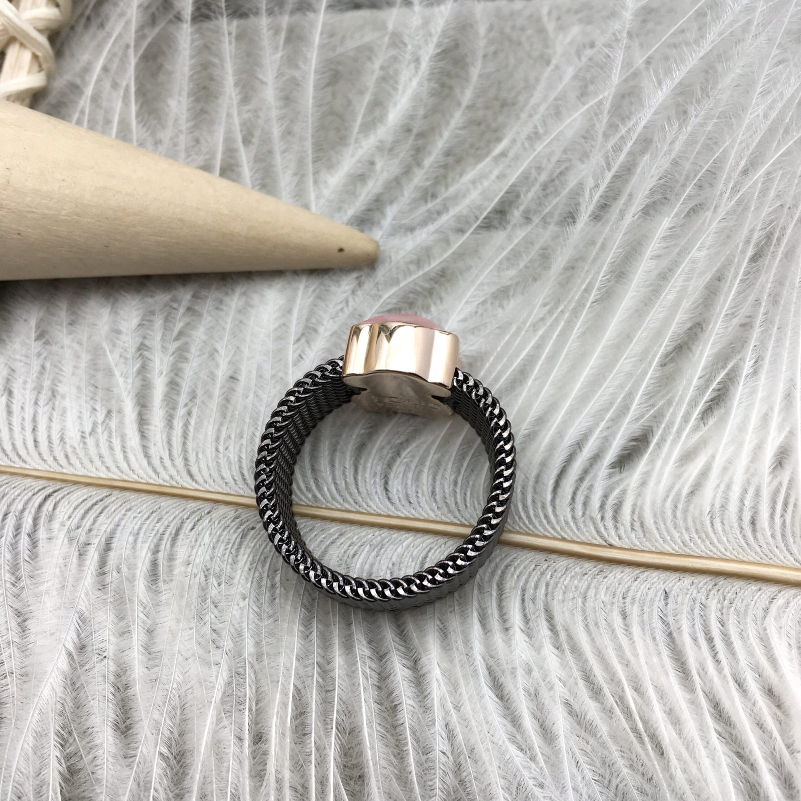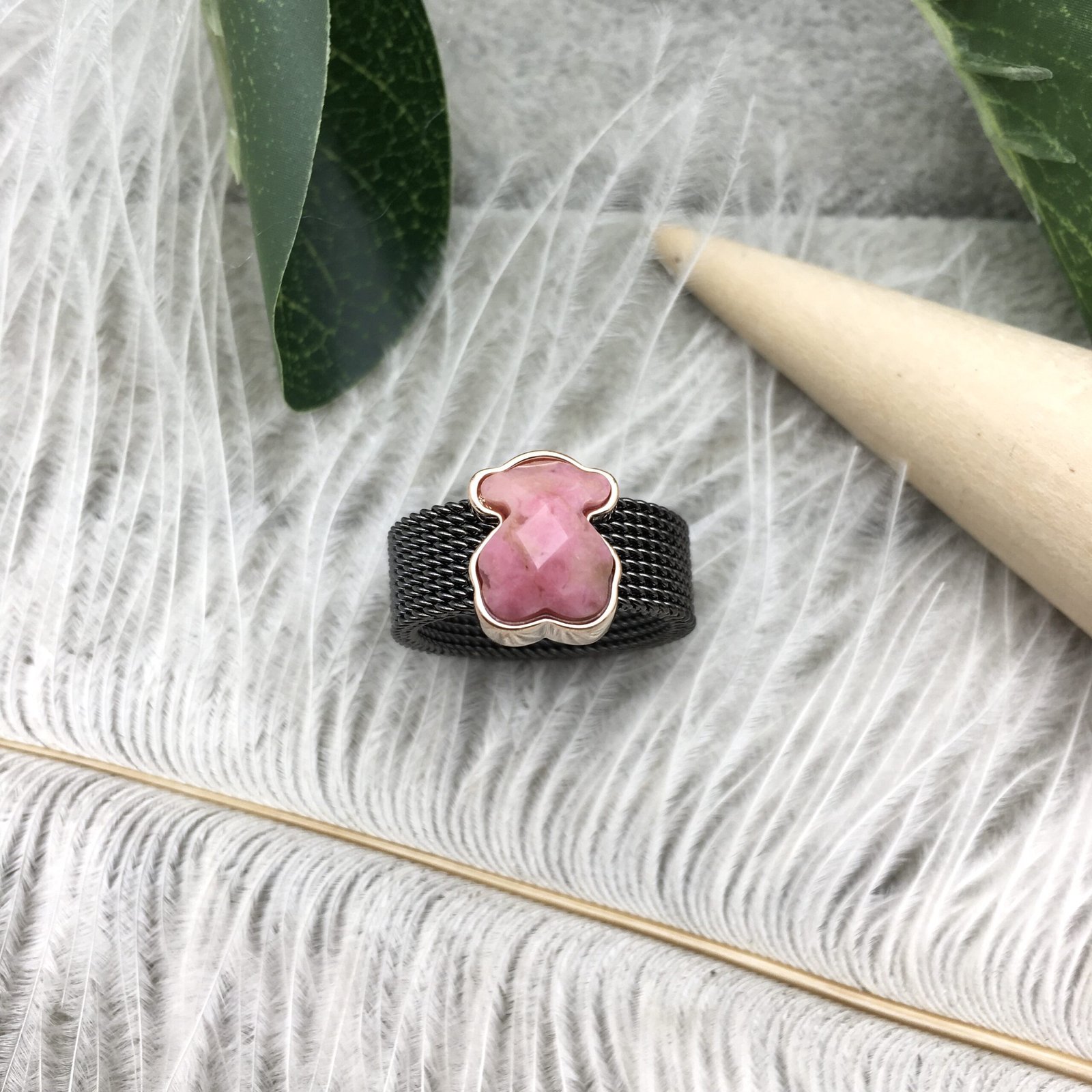 Be the first to review “Black IP Steel Mesh Color Ring with Rhodonite Bear motif” Cancel reply