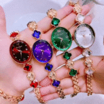 - Design Highlights: The rose gold metal bracelet is adorned with four-leaf clover gemstones, available in four main stone colors: white, red, purple, and green, creating an instant retro filter. The round dial is encrusted with dazzling imitation diamonds and accented with Roman numeral markers, balancing elegance and individuality. The adjustable strap fits all wrist sizes and layers beautifully with bracelets for added dimension.