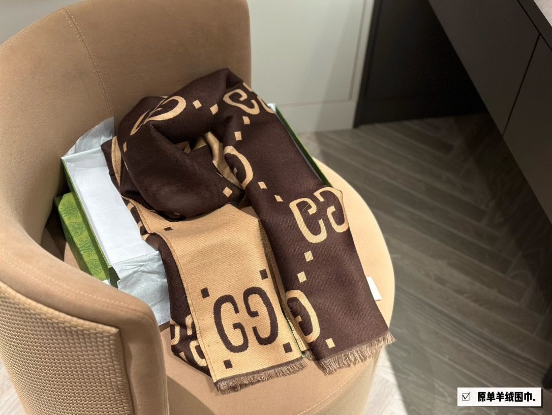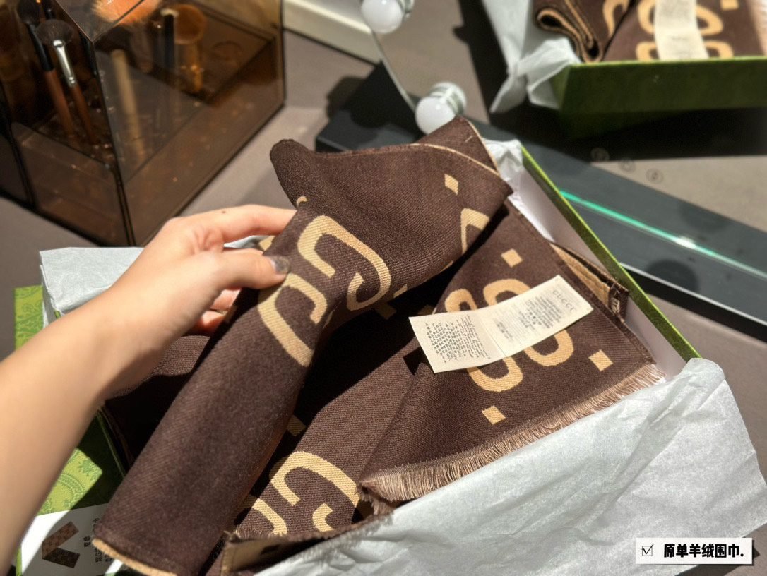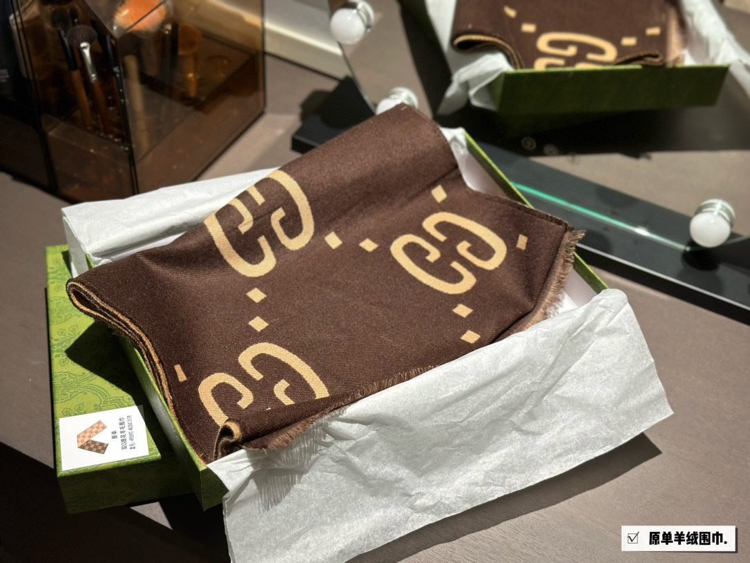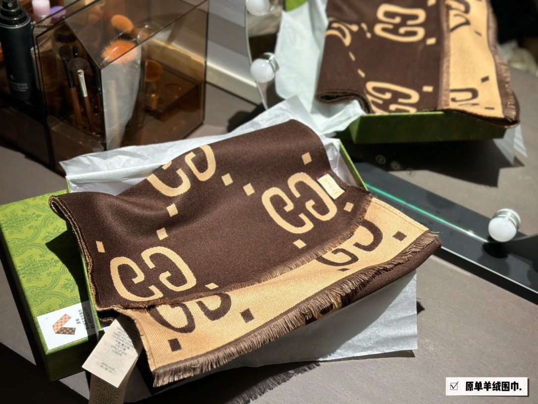 Lotte complete packaging size: 48 * 180cm Gucci G’s new cashmere scarf ???? Available on both sides 〰️ ????
