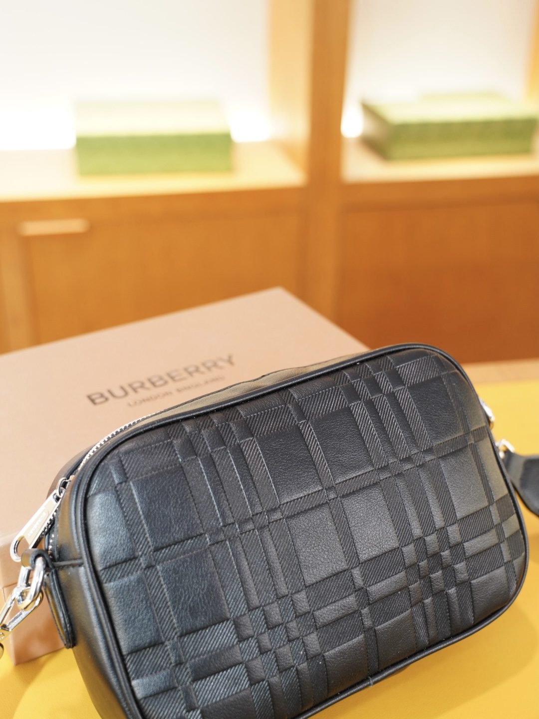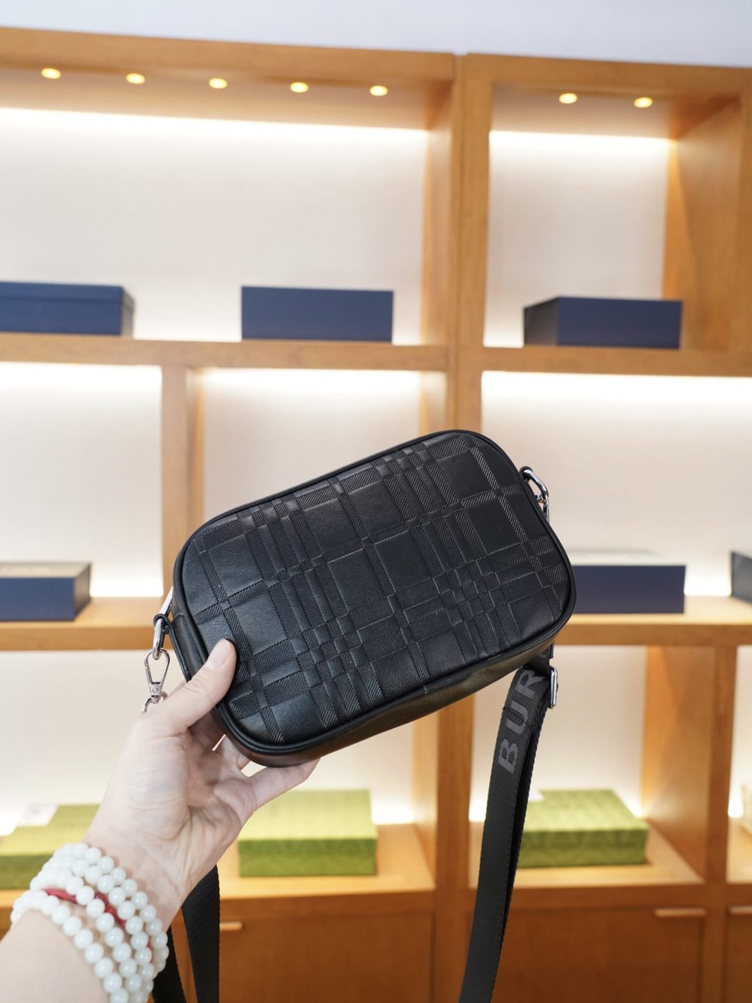 This Burberry camera bag nails understated luxury in every detail! The 3D tone-on-tone check pattern has a textured finish, the all-black colorway is sleek and versatile, and the branded webbing strap adds distinct recognition.