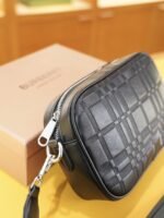 Home BAGS BURBERRY-BAG Burberry 3D Tone-On-Tone Check Camera Bag – Black Textured Crossbody, Unisex Minimalist Commuter Pouch(22x14x6)