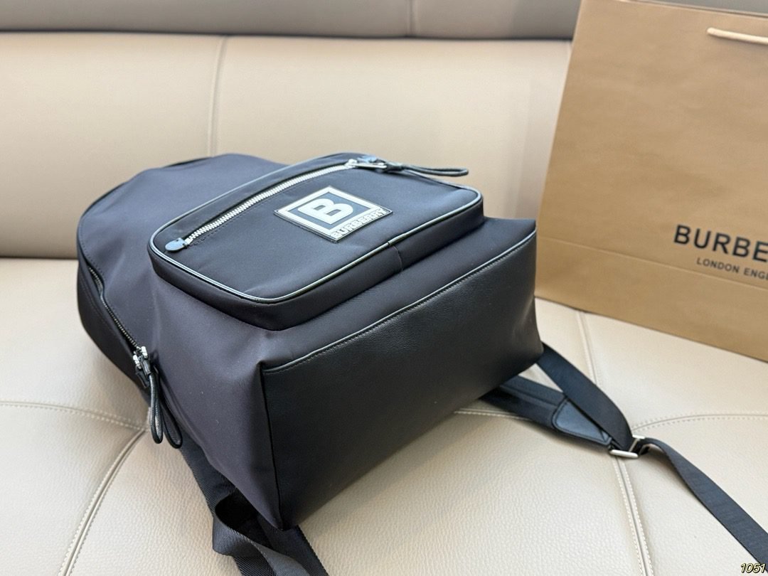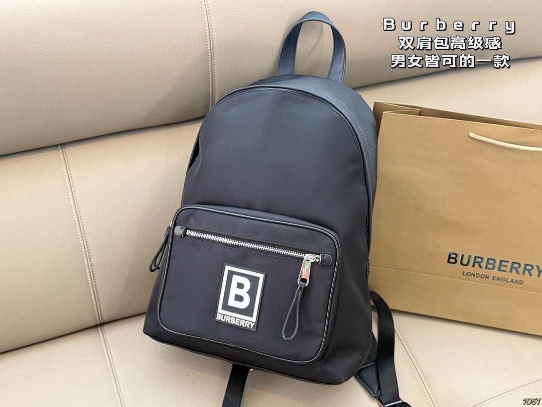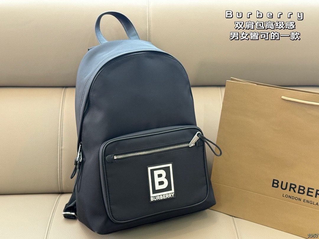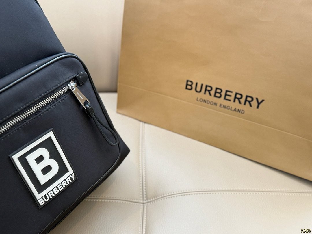 Burberry B Logo Backpack – Unisex High-End Nylon Bag, Minimalist & Versatile Commuter Style(29* 41)