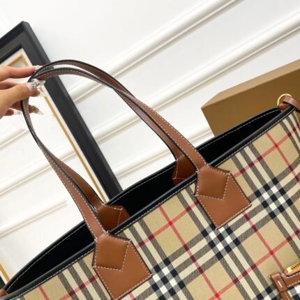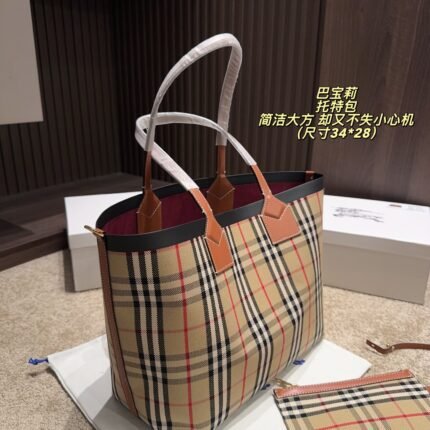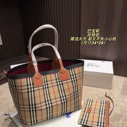 Burberry Classic Check Tote Bag (34*28) – Retro British Style Large-Capacity Parent-Child Bag, Versatile Commuter Style
