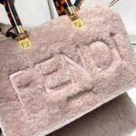 By The Way Boston mini handbag. It is a cute little lamb wool bag that feels great and plush. It is printed with FENDI ROMA and is made of hard material with plexiglass handles. It has a zippered interior and has a large capacity. Style number 8595. Pink size. 17x8x12