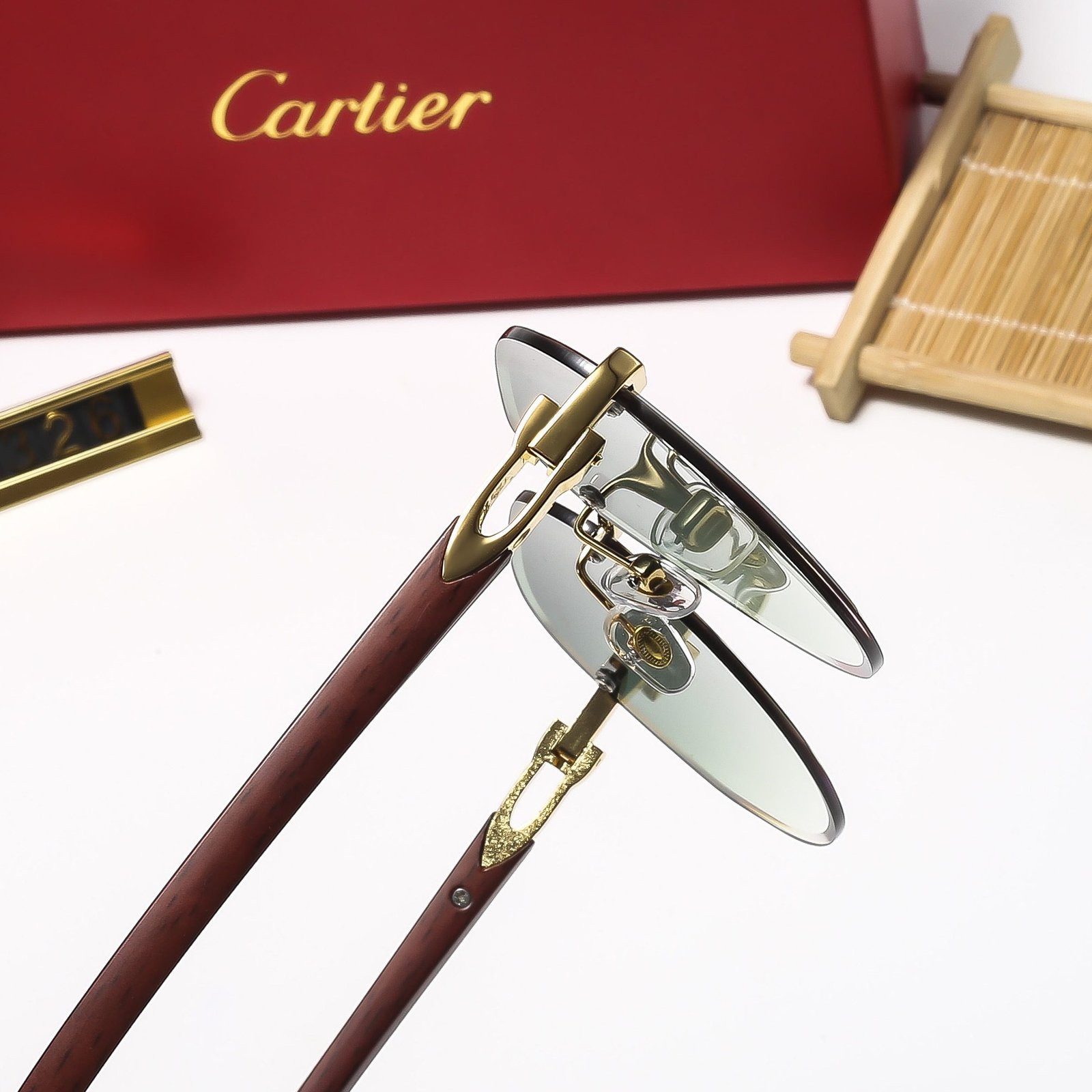✨ The Cartier 2826 Rimless Sunglasses feature a rimless aviator silhouette paired with wooden temples and metallic accents, exuding a sense of luxury and sophistication, making them a standout piece to elevate the refinement of your look.