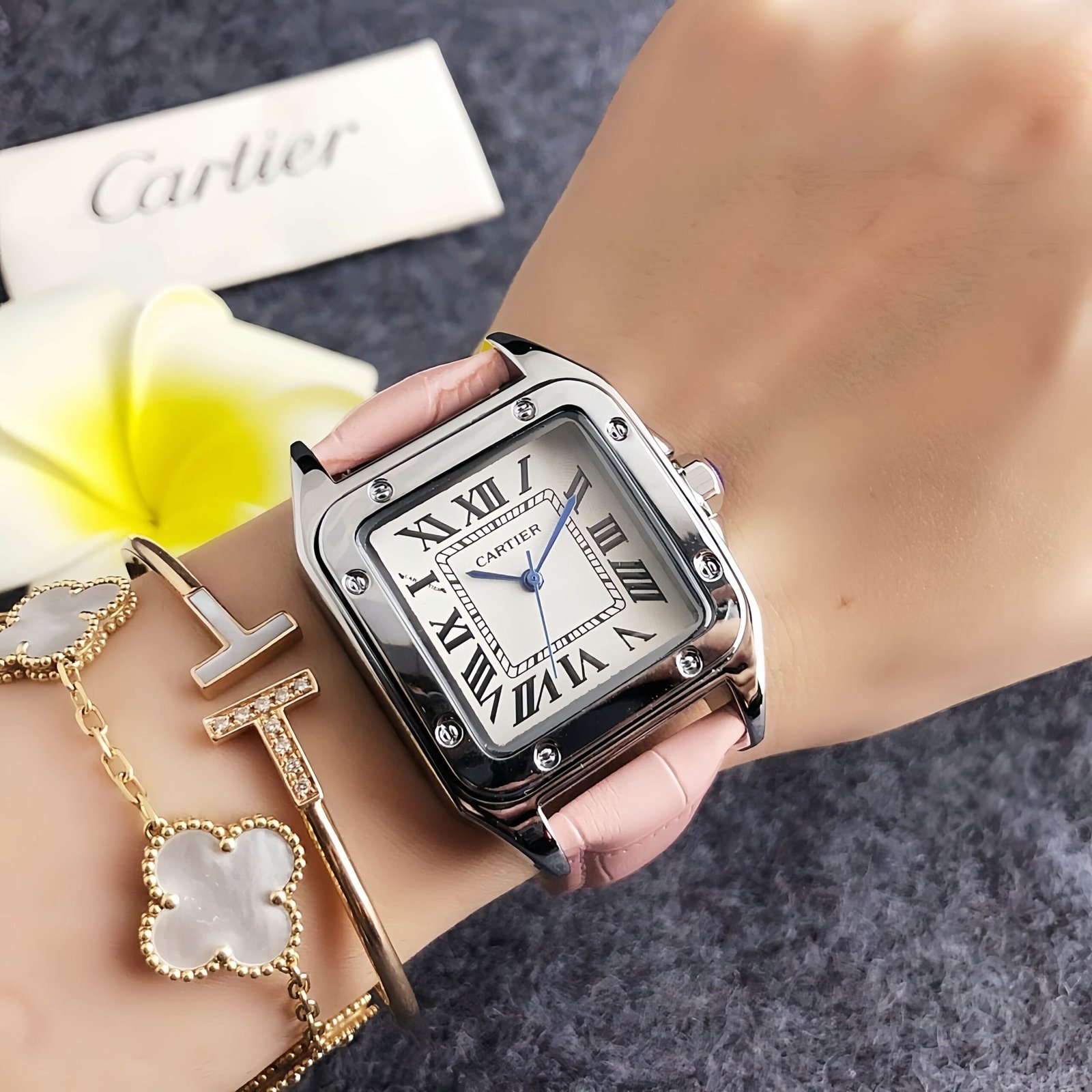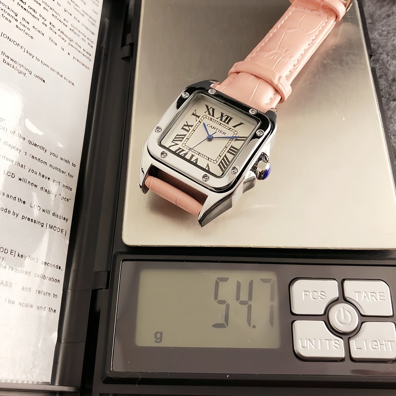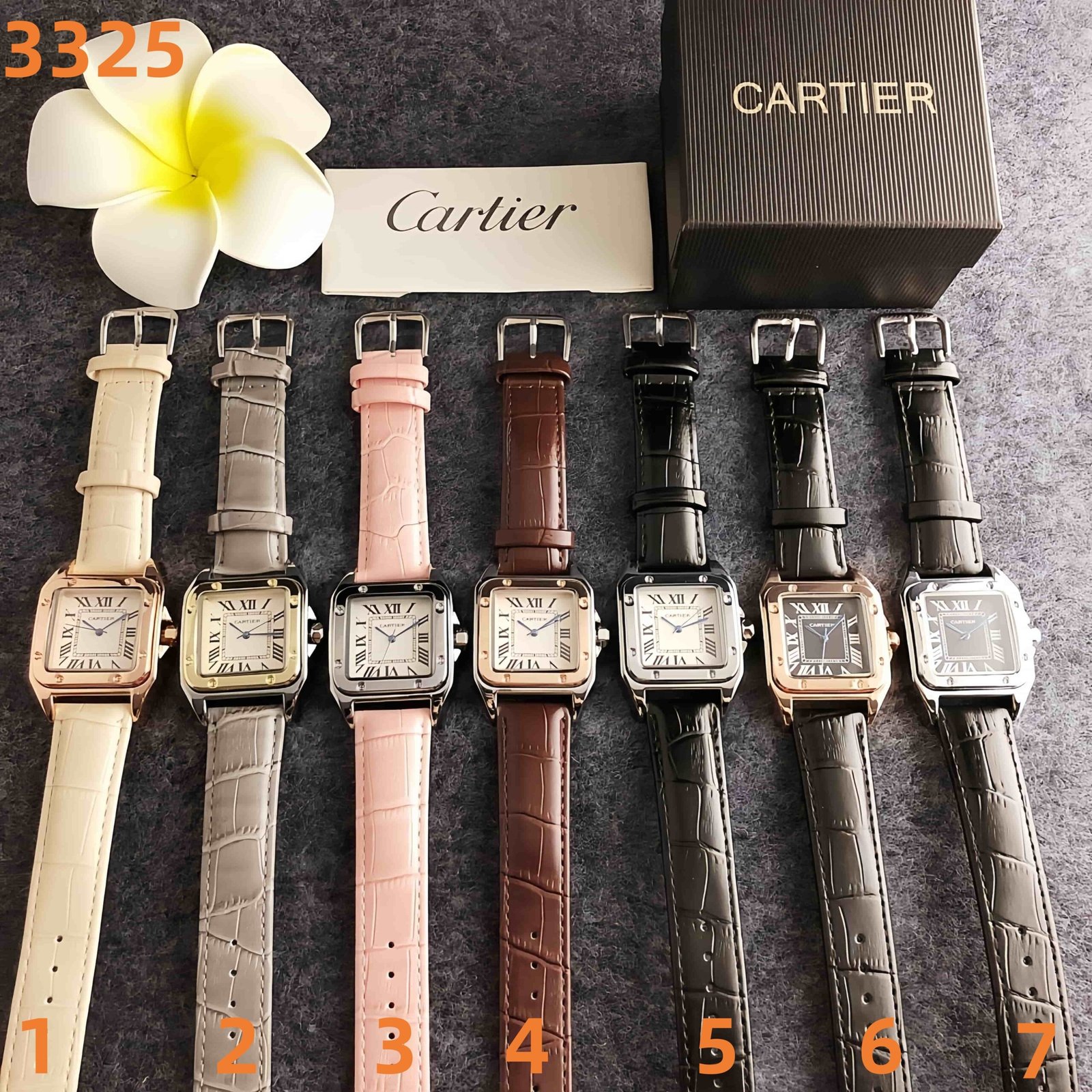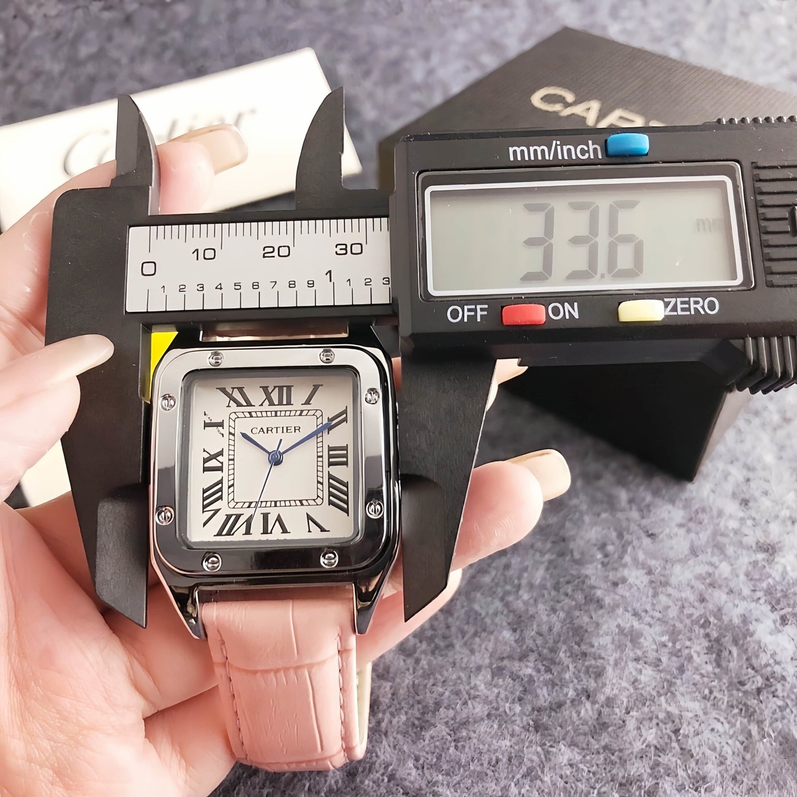 Cartier 3325 series watches feature the iconic square Santos design, paired with luxurious crocodile – embossed leather straps in a range of sophisticated colors like beige, gray, pink, brown, and black. Embodying Cartier’s legendary craftsmanship and elegant style, these timepieces blend classic charm with versatile appeal, making them perfect for adding a touch of refined luxury to any look, whether for formal events or everyday sophistication.