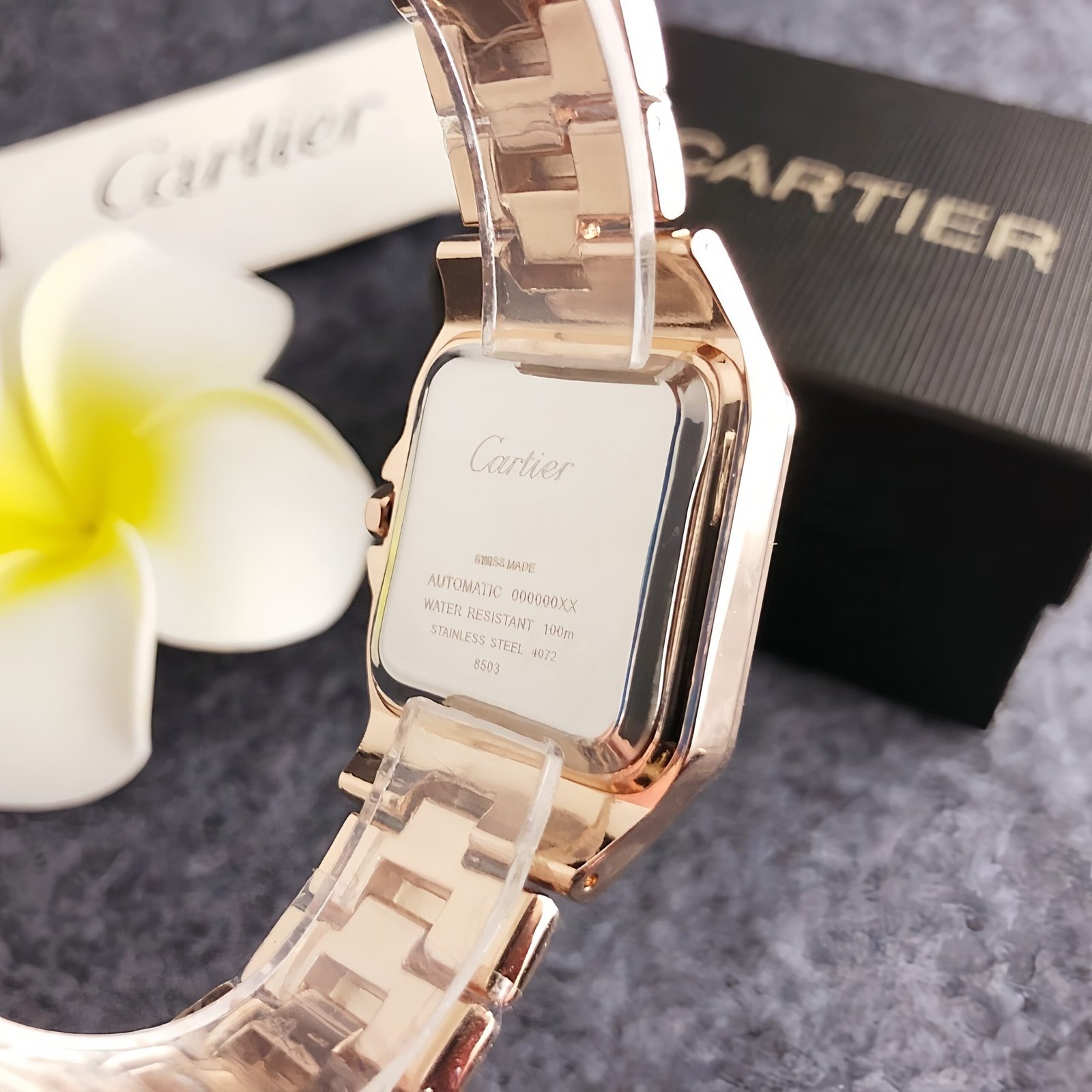 Cartier 8503YY series watches feature the iconic square shape with Roman numerals, embodying Cartier’s legendary craftsmanship and elegant style. Available in sophisticated tones like silver, gold, and rose gold, these timepieces pair with sleek metal bracelets for a refined look. Perfect for adding a touch of high-end luxury to any ensemble, they represent the epitome of Cartier’s enduring design legacy, suitable for both formal occasions and everyday elegance.