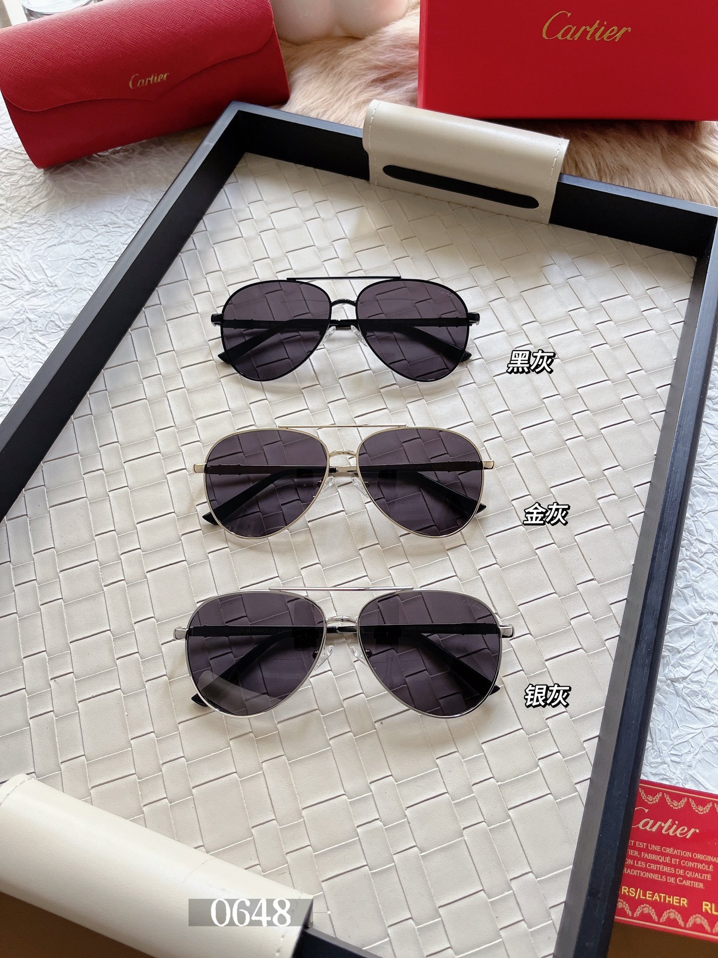 Cartier’s Aviator sunglasses are available in three shades: black-gray, gold-gray, and silver-gray, perfect for every style. The classic aviator frame features clean lines, exuding a sense of style and cool. Whether blocking glare while driving or creating a stylish look for everyday outings, these sunglasses easily complement your style and add a touch of flair. They are a stylish and practical piece that combines both practicality and aesthetics.