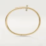 Home JEWELRY Cartier / JUSTE UN CLOU BRACELET Juste un Clou bracelet, classic, 18K yellow gold (750/1000), set with 32 brilliant-cut diamonds totaling 0.58 carat. Width: 3.5 mm (for size 17).