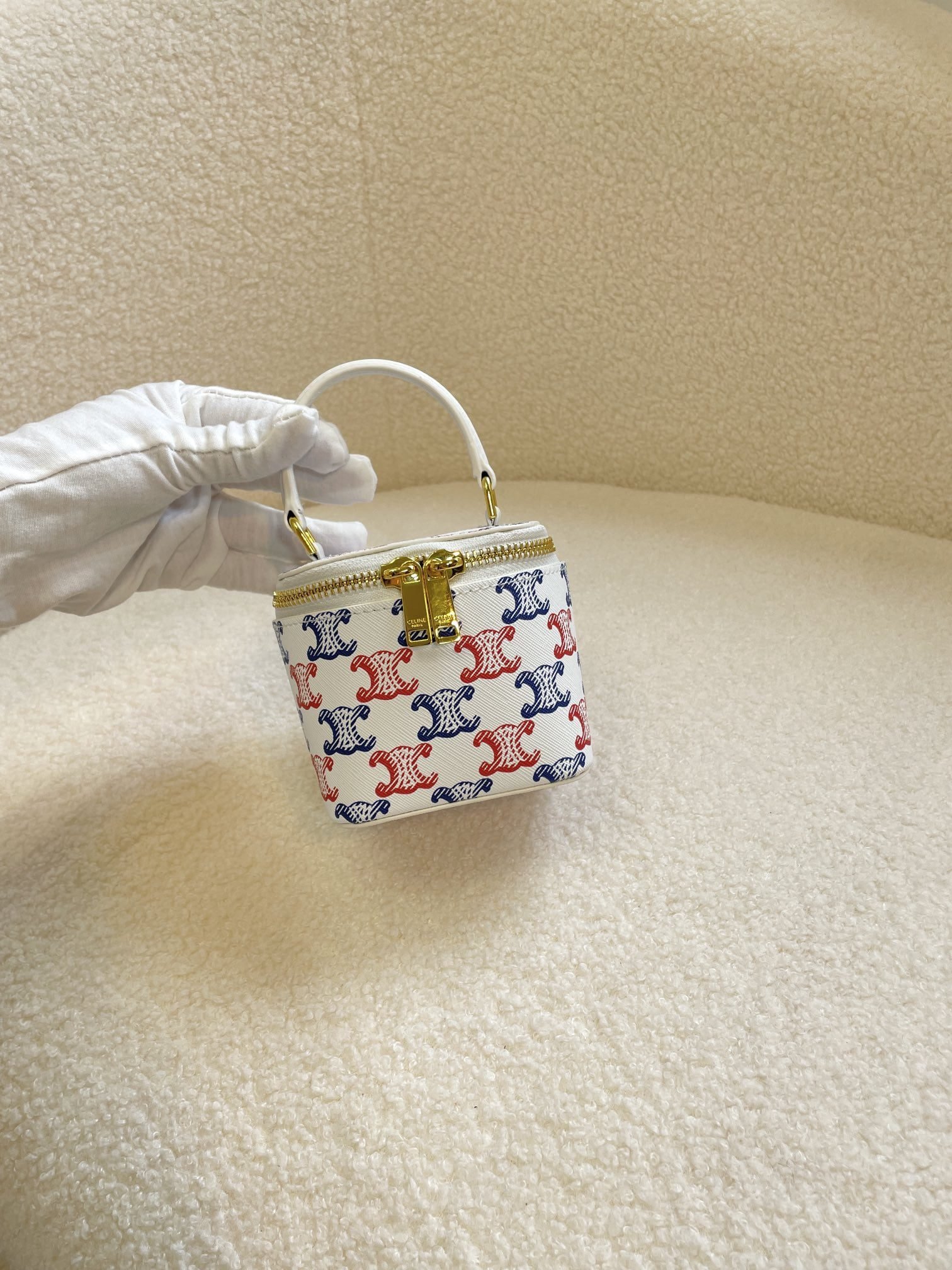 CELINE 23s Spring/Summer - Mini smooth leather makeup case Presbyopia pattern 8080 Size: 9.5* 8* 9cm