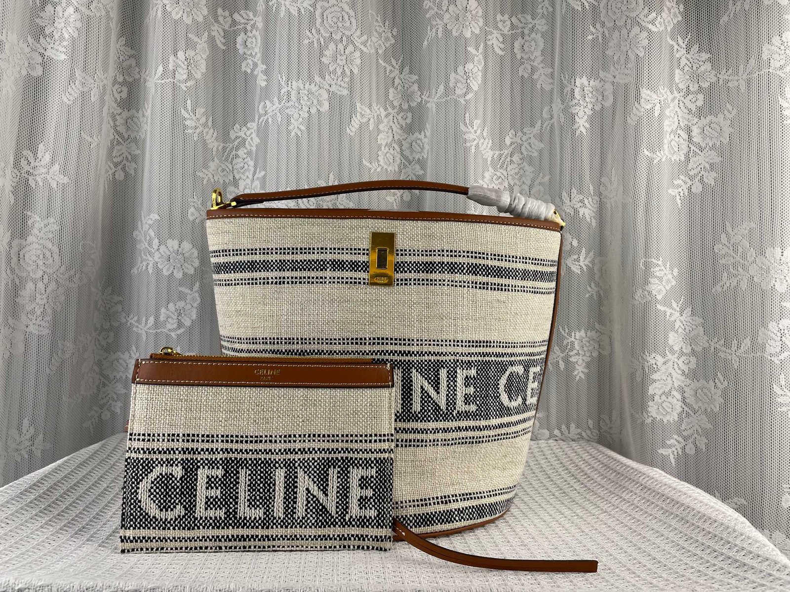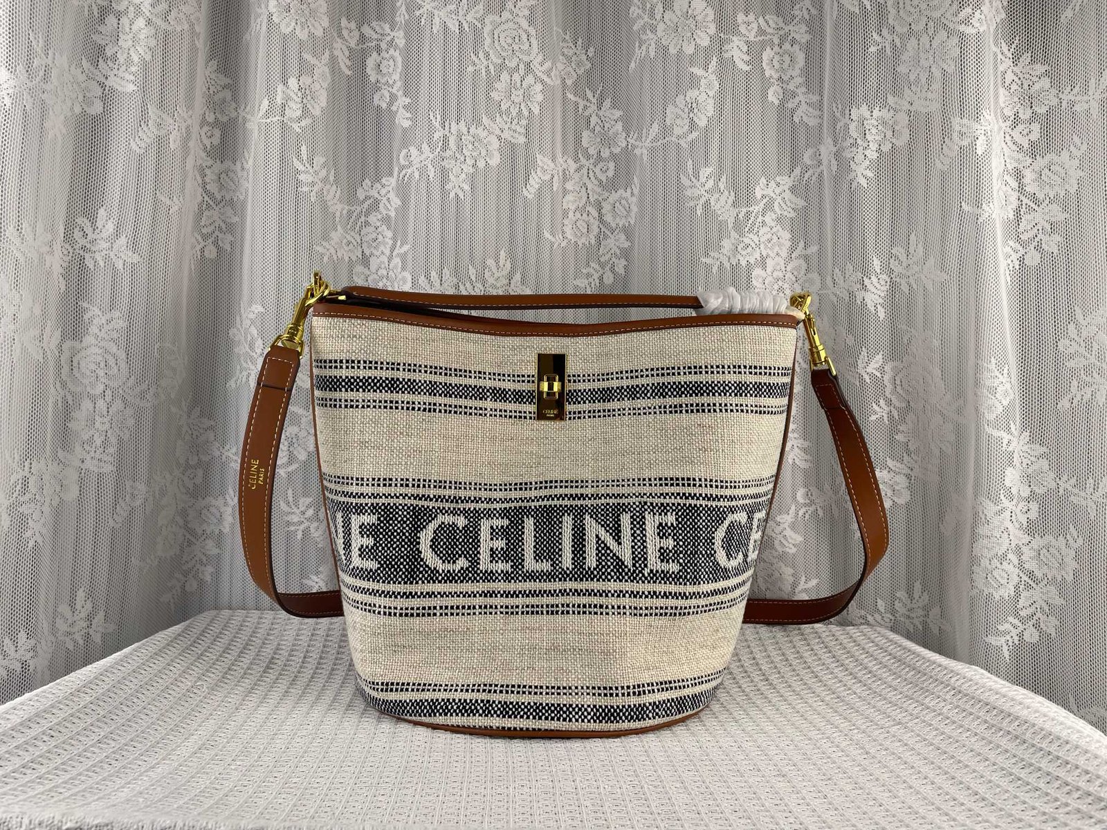 BUCKET 16 CELINE Fabric Cow leather bucket bag