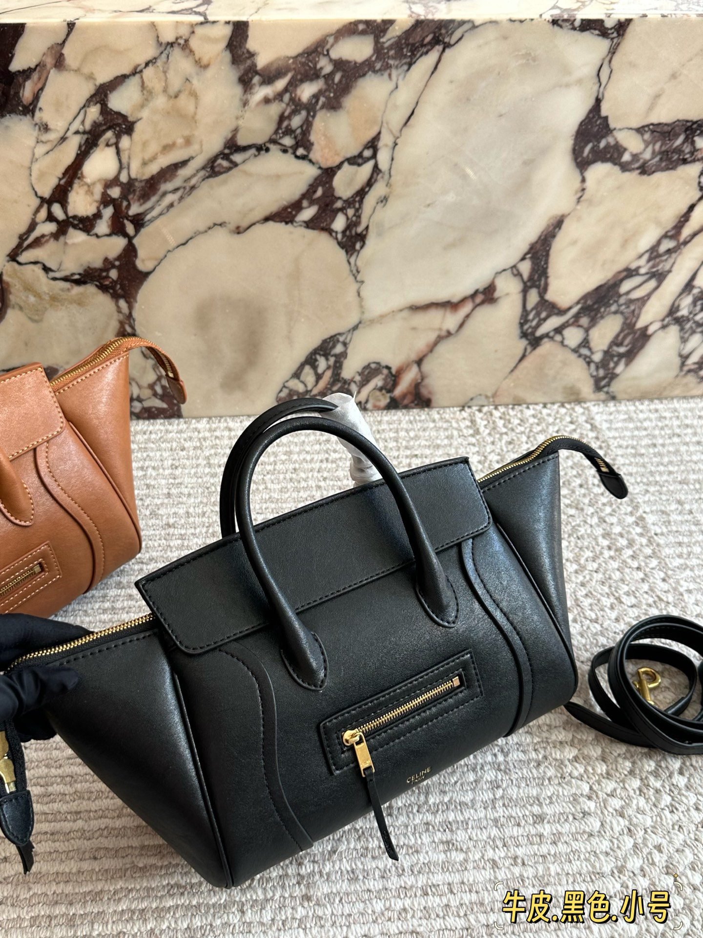 ✨ The iconic Celine Mini Smiley Tote Bag is crafted from fine grained leather. The signature curved silhouette and front pocket zipper design evoke a retro, elegant French style, with a lightweight construction that balances practicality and luxury.