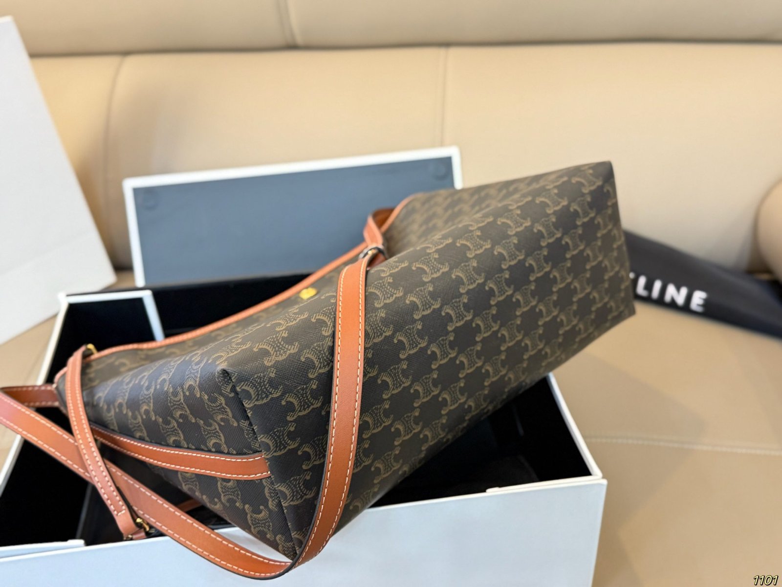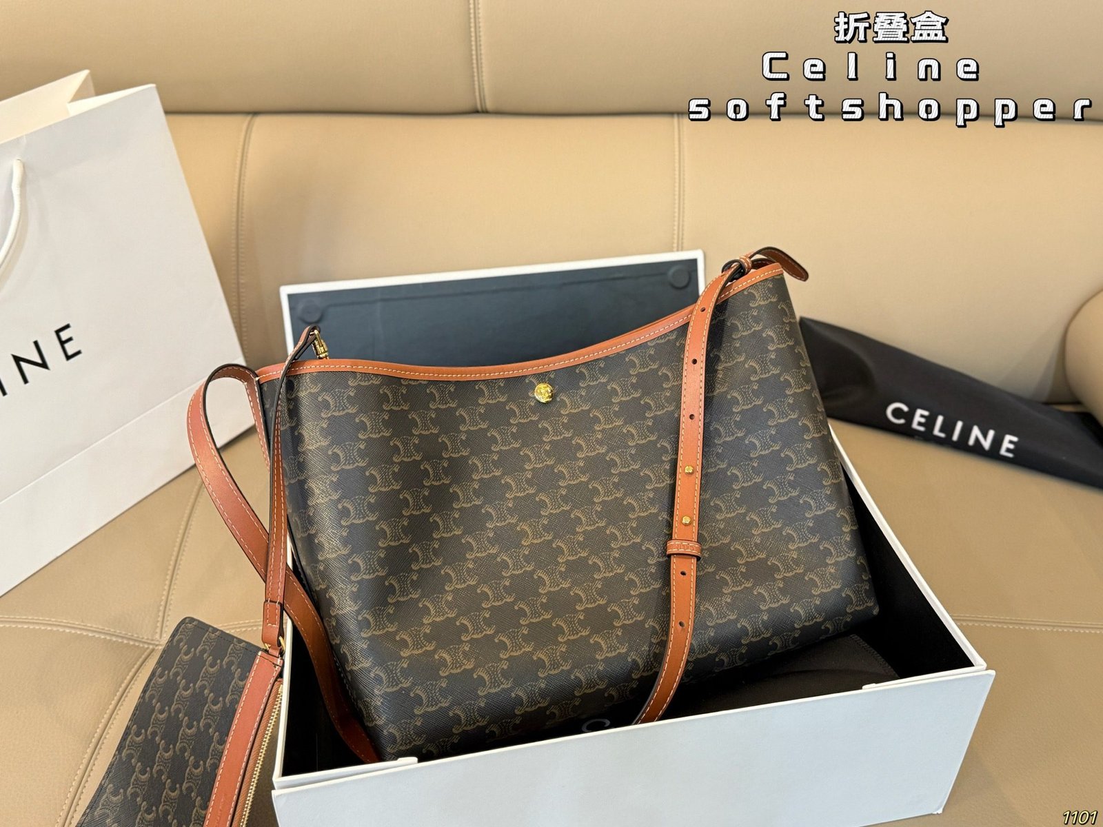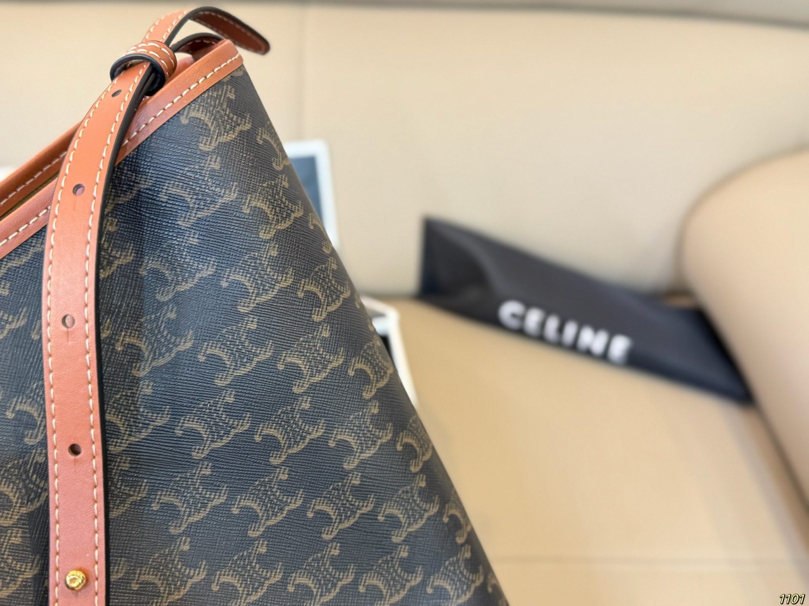 ✨ The Celine Soft Shopper Monogram Tote Bag features the signature monogram canvas paired with natural leather trim. The minimalist hobo silhouette and metal snap button design exude a laid-back French charm and practicality.