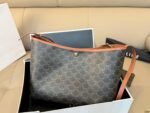 ✨ The Celine Soft Shopper Monogram Tote Bag features the signature monogram canvas paired with natural leather trim. The minimalist hobo silhouette and metal snap button design exude a laid-back French charm and practicality.