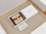 ✨ The Celine Triomphe Compact Wallet is crafted from durable canvas with fine leather trim. The iconic Triomphe gold metal clasp is bold and refined, balancing vintage charm with practicality.