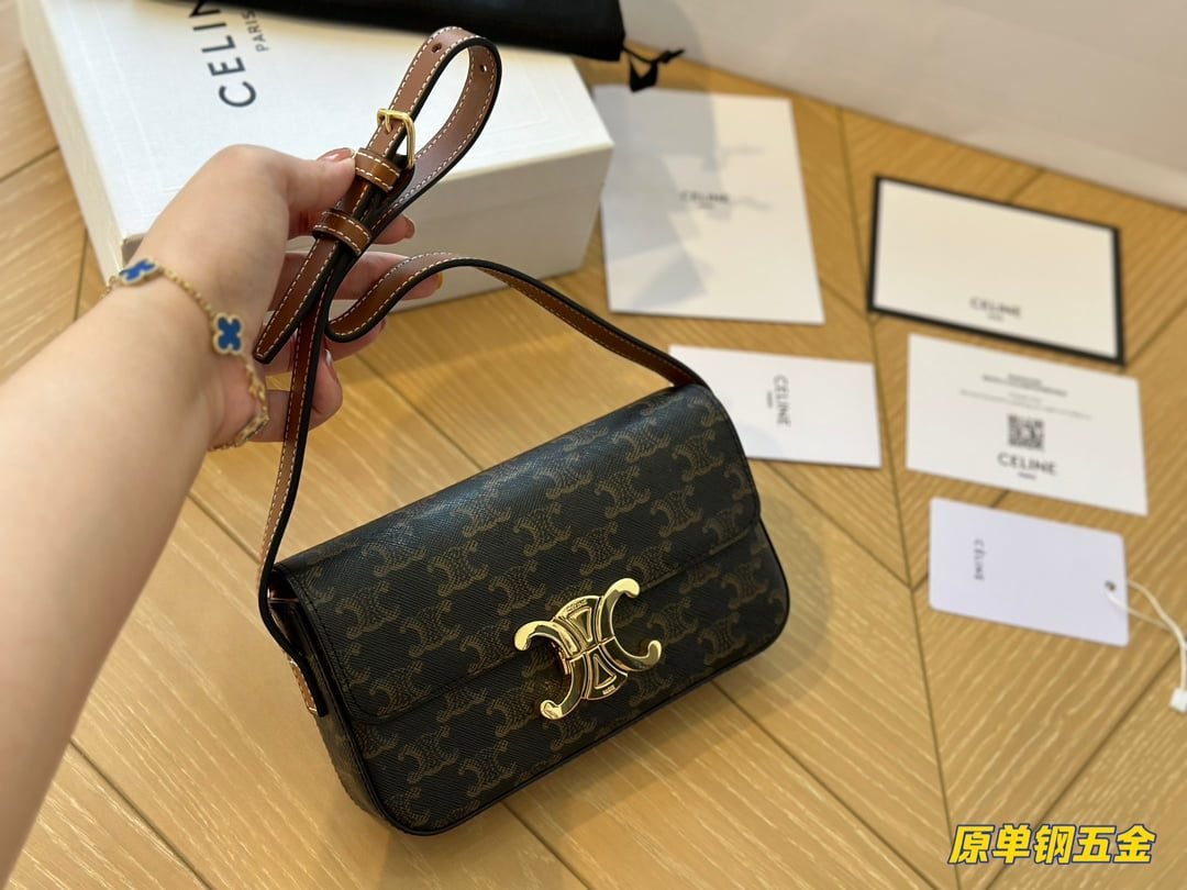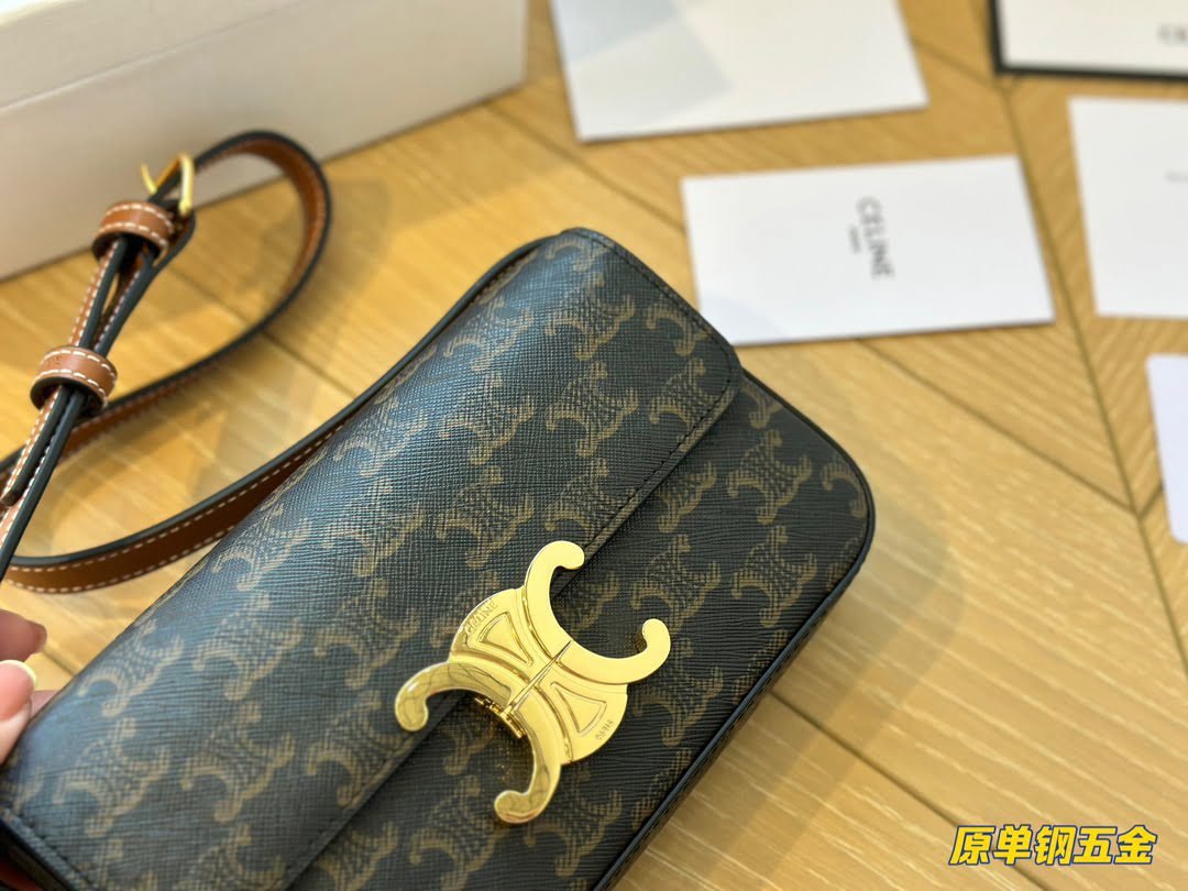 Home BAGS CELINE--BAG CELINE TRIOMPHE Presbyopia pattern Crossbody bag Black size: 19*15cm