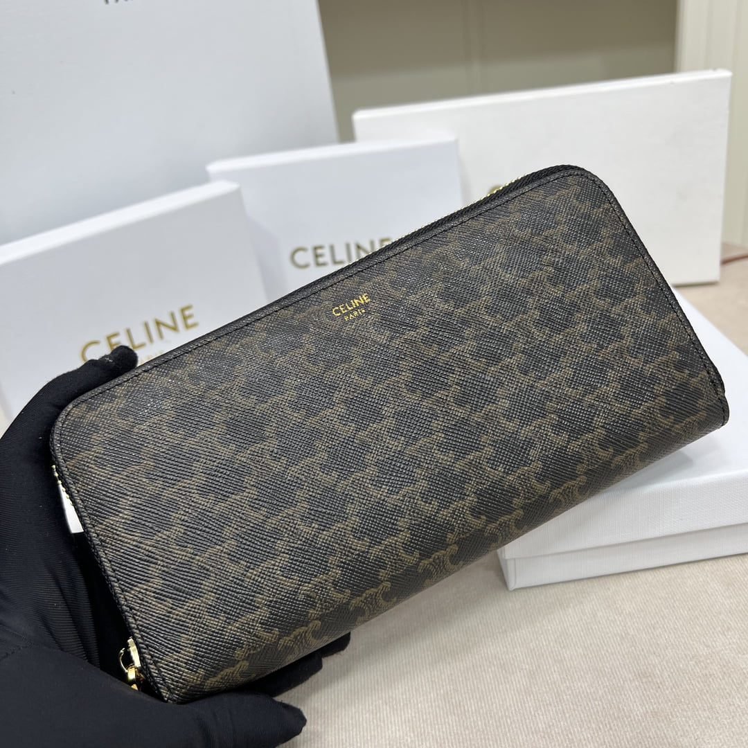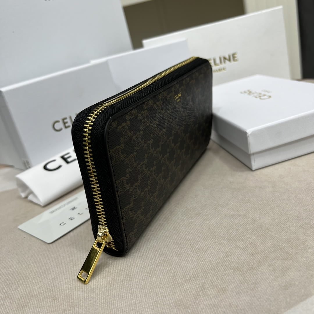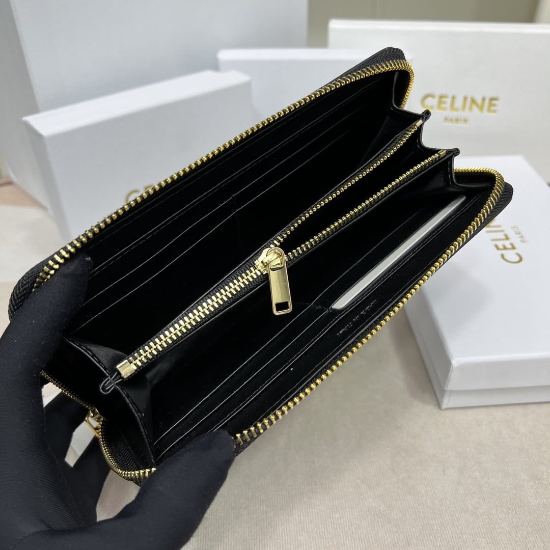 CELINE????????TRIOMPHE canvas large CCHARM zipper silver Bag Noir calfskin lined gold metal trim zipper switch with two folding inner compartments with eight credit card insert pockets with one zipper pocket with two flat pockets ???? Dimensions: 7 X 4 inches (19 X 10 cm) Number: 10552