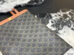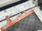 ✨ The iconic Celine Triomphe Tote Bag features the signature Triomphe monogram canvas paired with natural leather trim. The minimalist vertical tote silhouette exudes sophistication, with a metal snap button design that balances practicality and elegance.