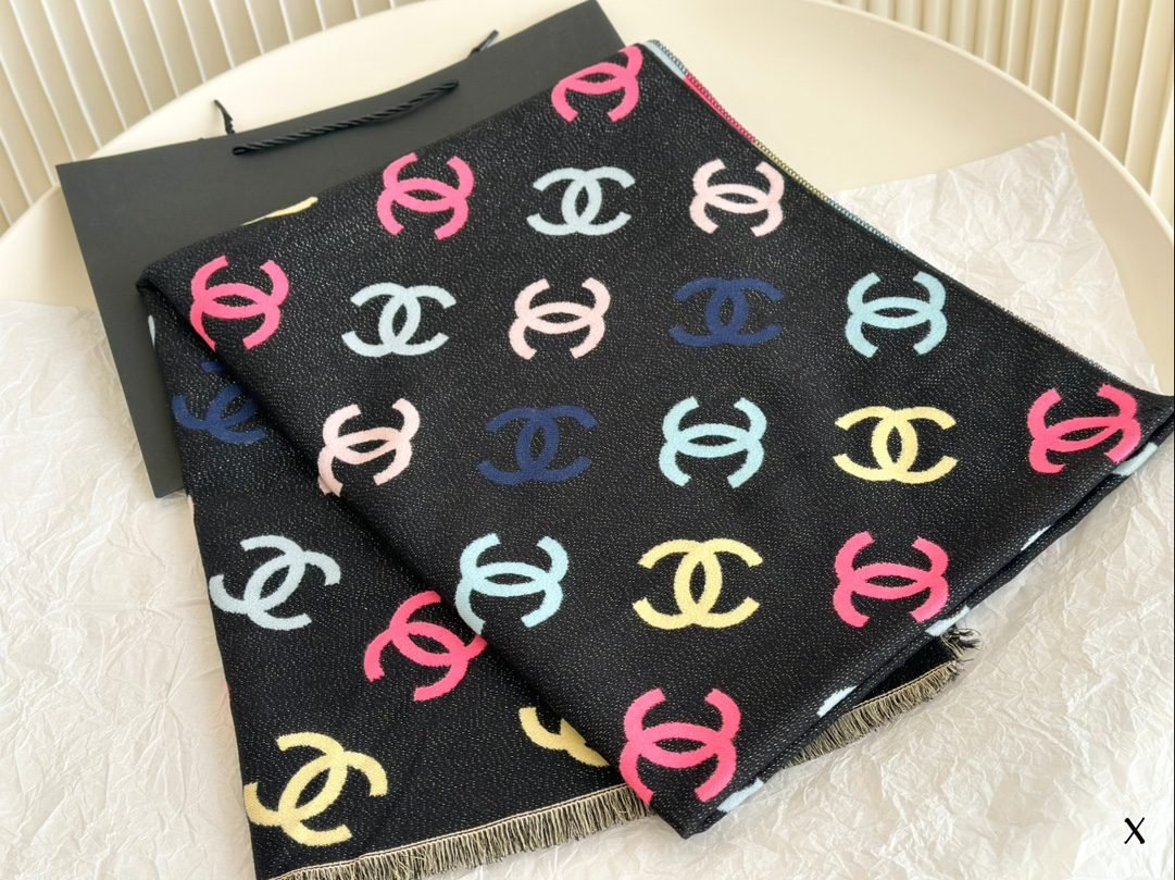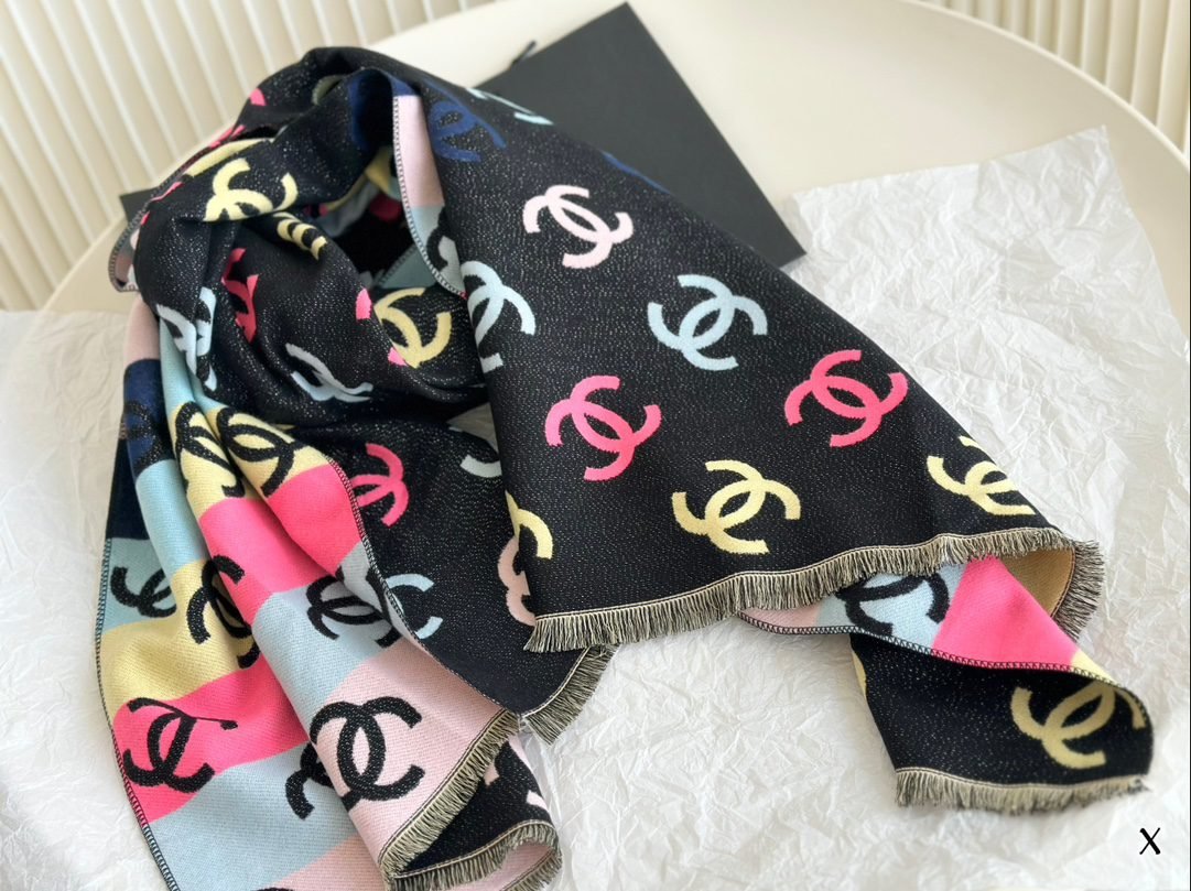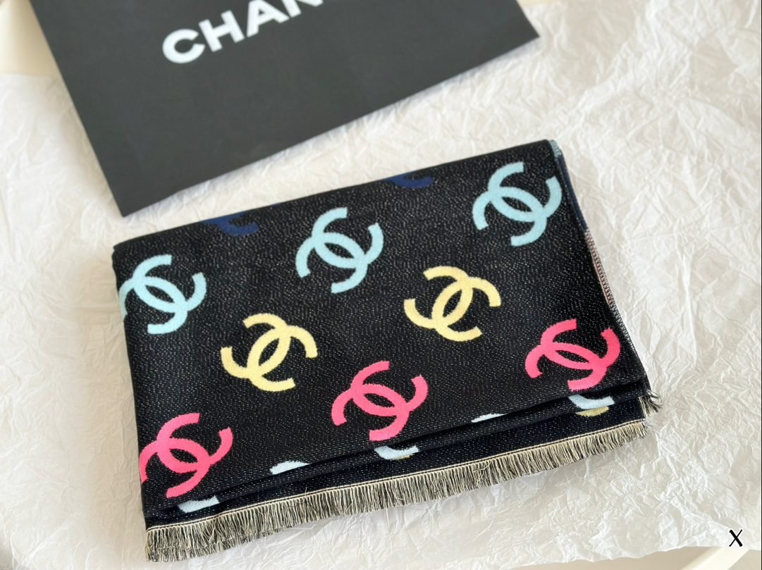 Lotte Complete Packaging ➕ reticule size:32*180cm Chanel Chanel Xiaoxiang’s double-sided scarf Scarf feels soft to the touch
