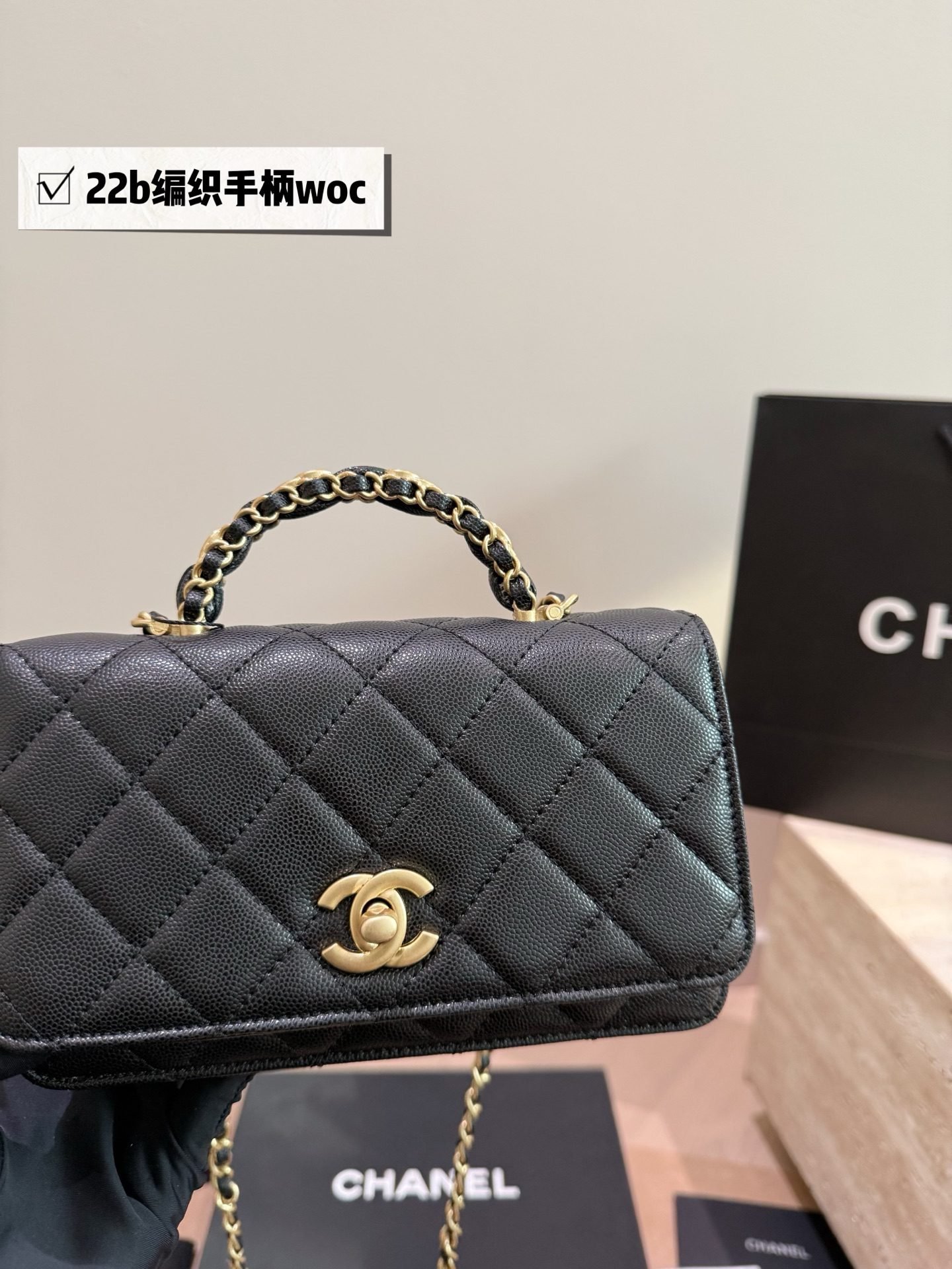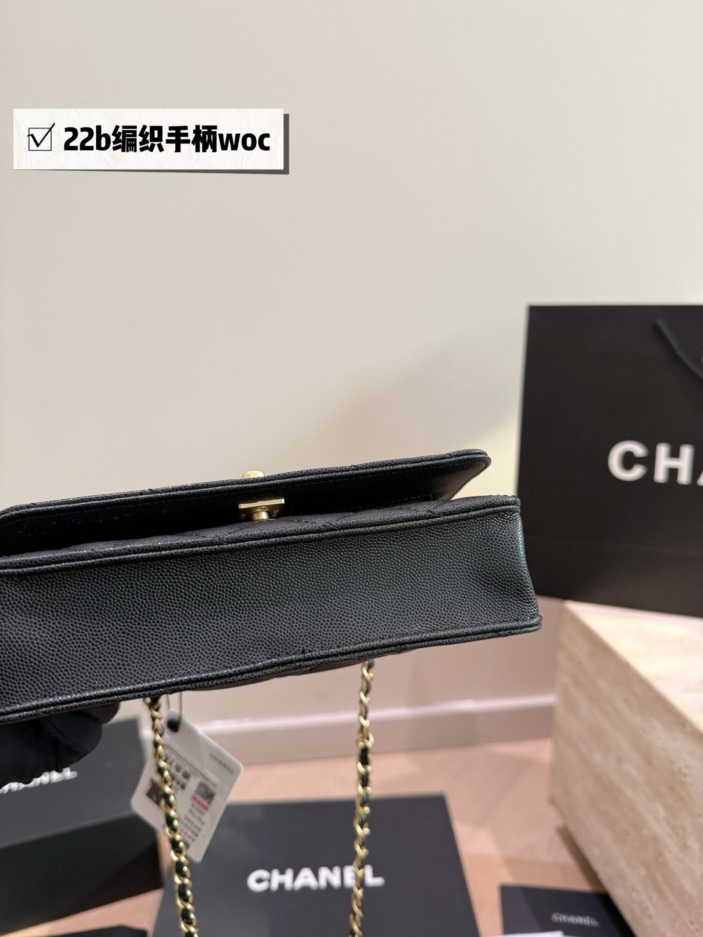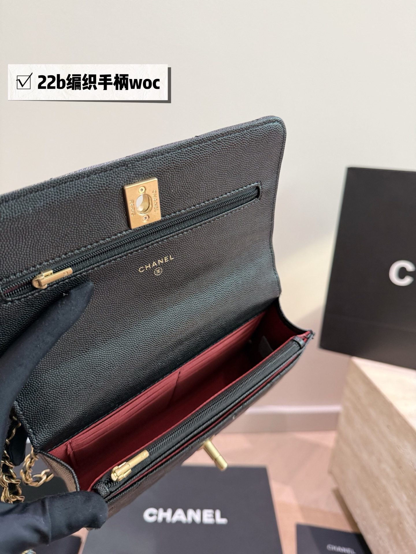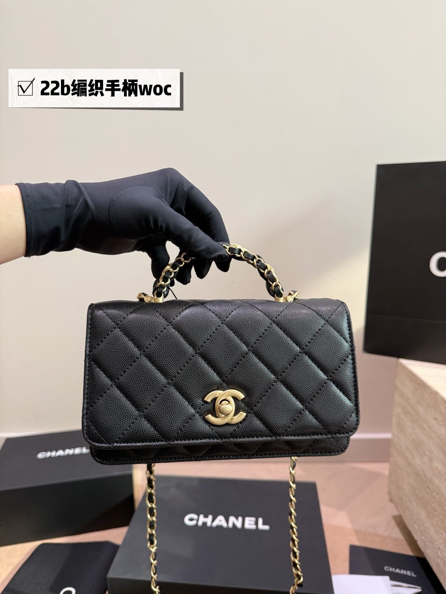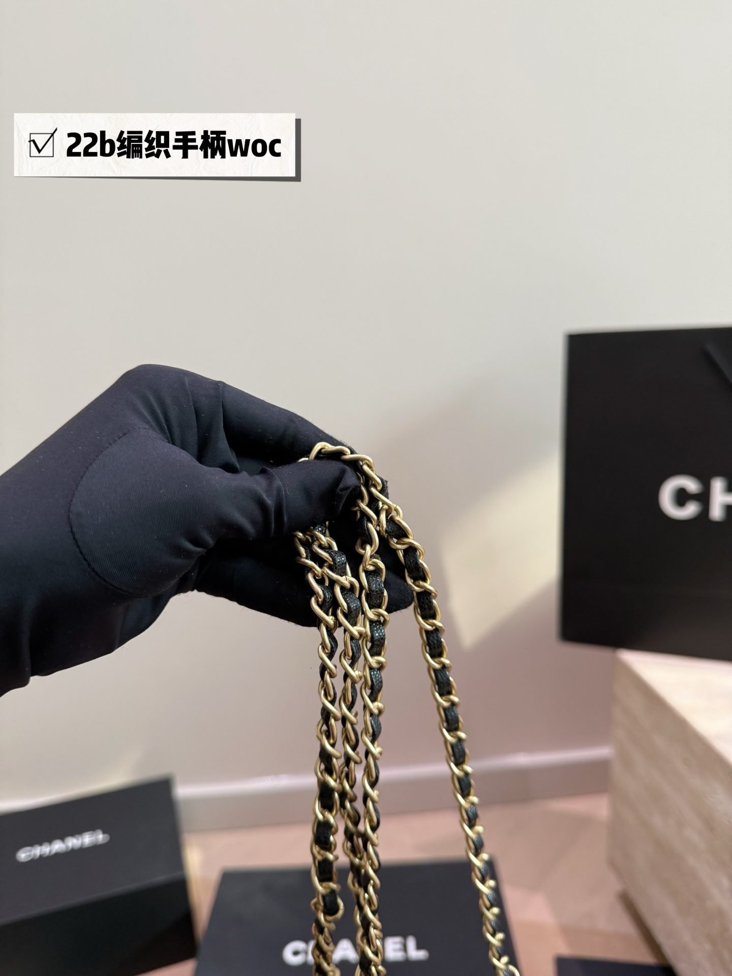 This Chanel 22B Woven Top Handle WOC is a masterpiece that blends the brand’s classic diamond quilting with retro woven elements, balancing exquisite craftsmanship and practicality—making it a highly coveted “all-rounder mini bag” in the fashion world.