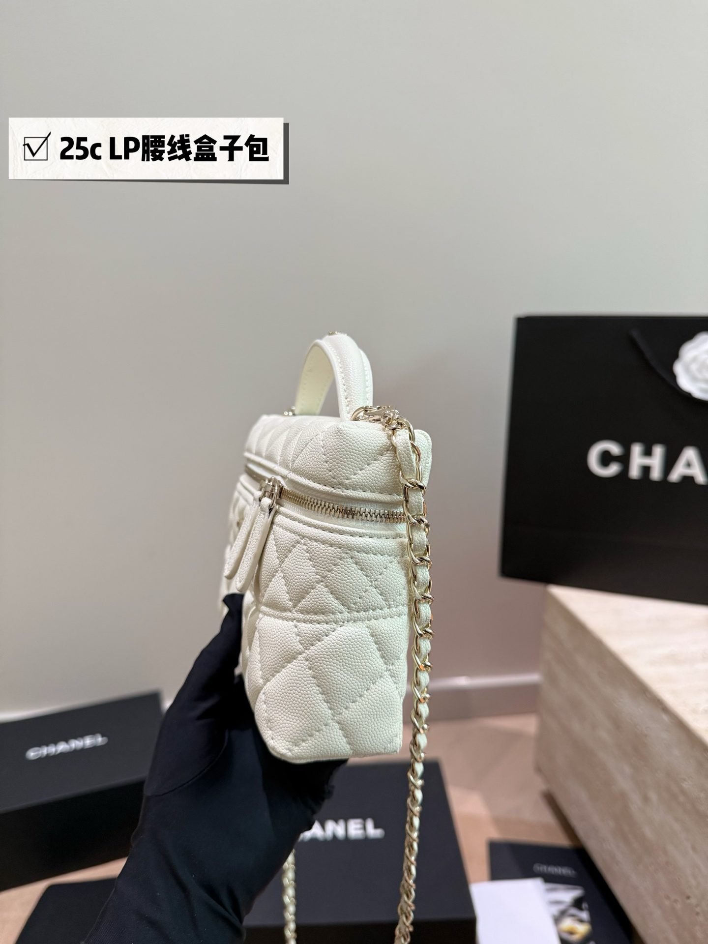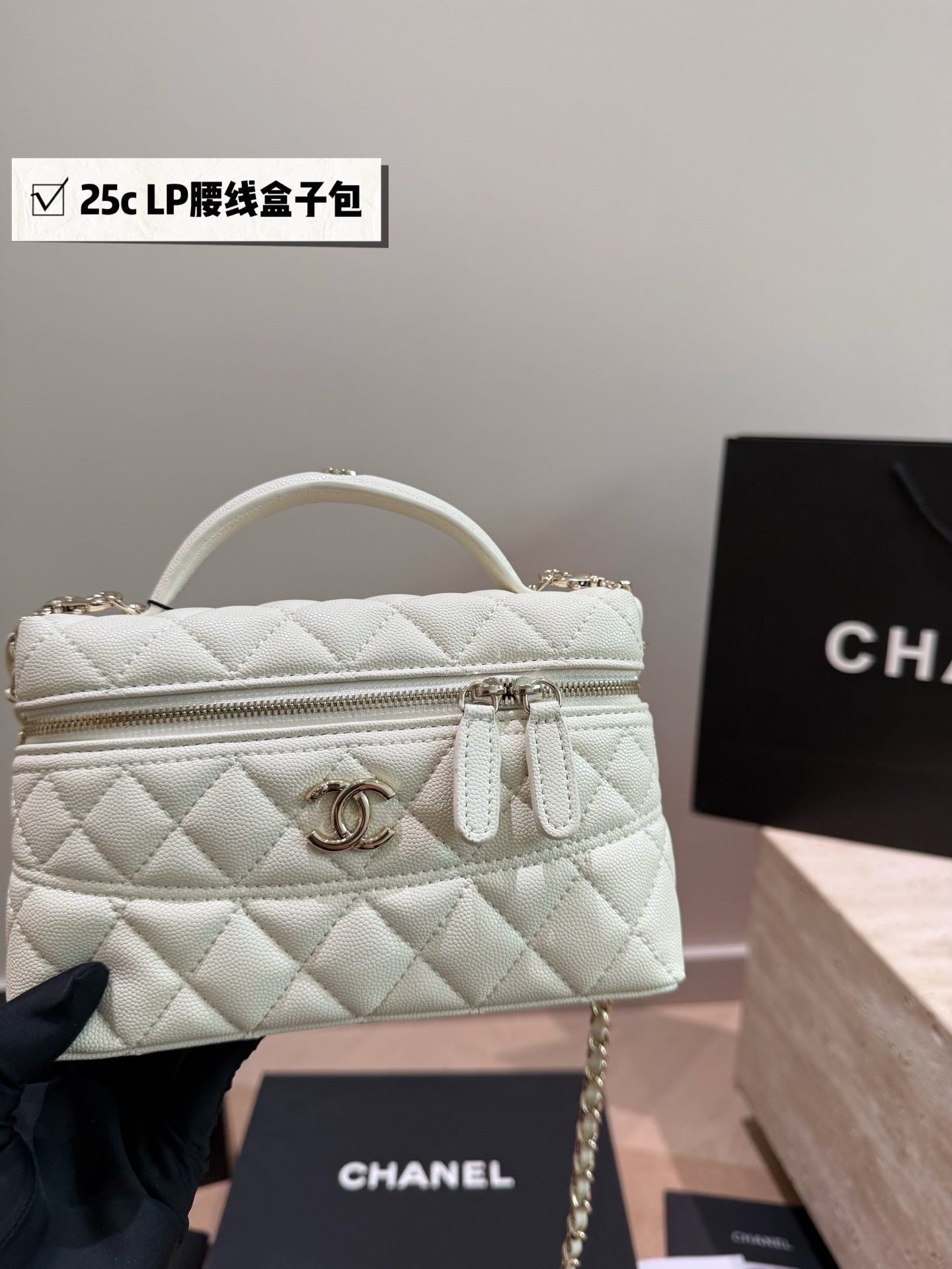 This Chanel 25C LP Waist Vanity Case is a masterpiece that blends the brand’s classic diamond quilting with a practical cosmetic bag silhouette. With its exquisite top handle and detachable chain, it has become a highly coveted mini bag in the fashion world.