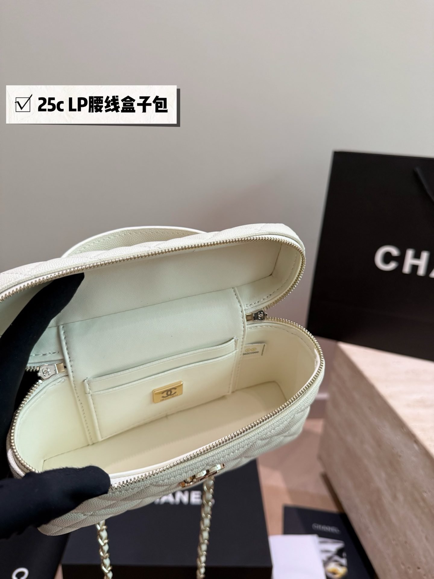 - Vanity Case Silhouette: A dual-zip top closure reveals a neatly organized interior, perfect for storing lipsticks, powders, keys, and other small daily essentials—functioning as both a cosmetic bag and a crossbody bag.