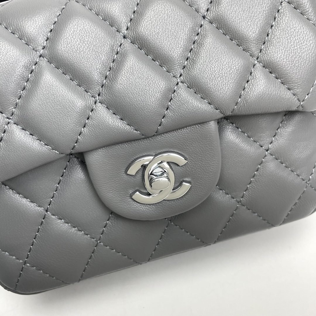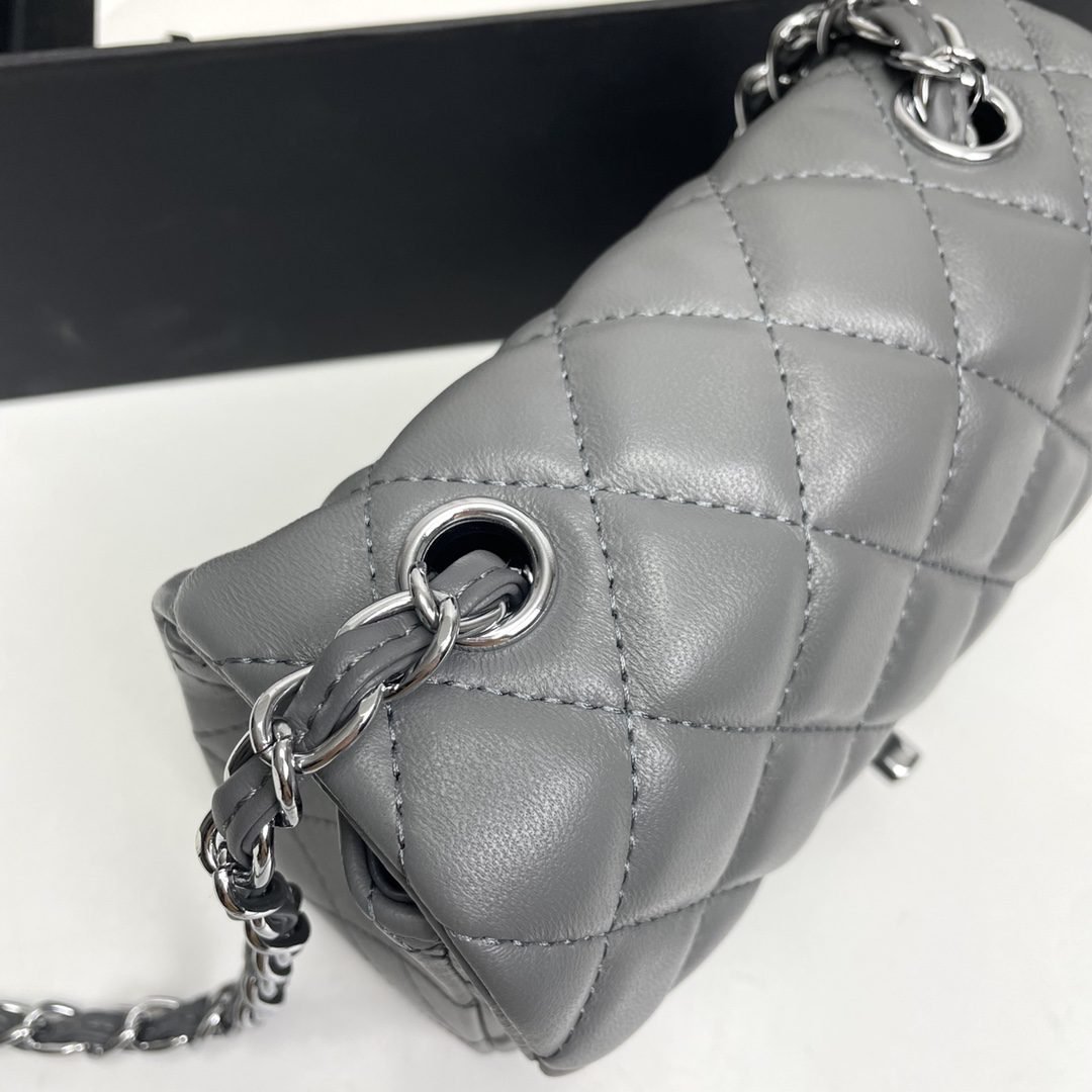 Chanel cf Square Fat 1115 sheepskin leather grey size: 18*14*7cm