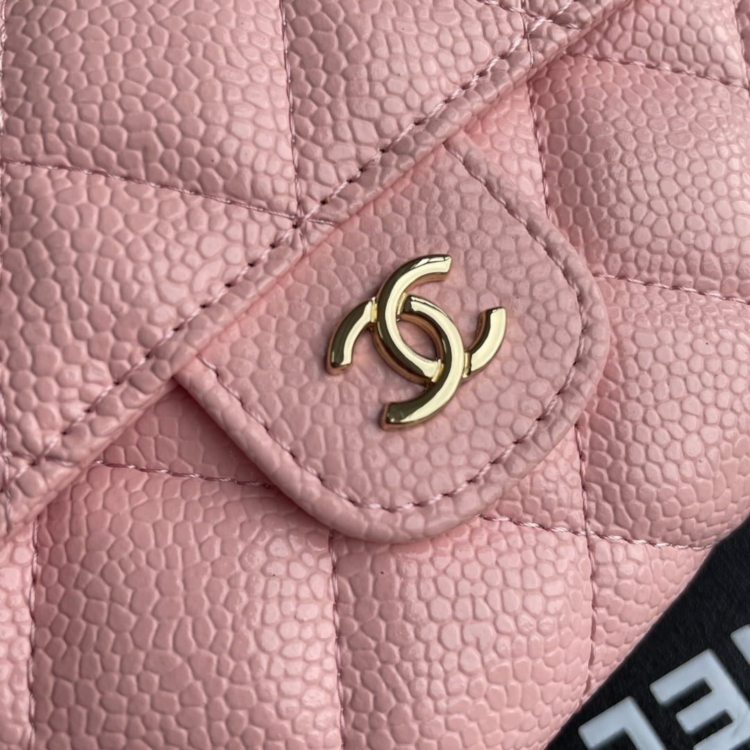 Home BAGS CHANEL-BAG Chanel chain crossbody bag Cowhide with diamond lattice caviar Pink A50076 size: 18*10.5*3.5cm