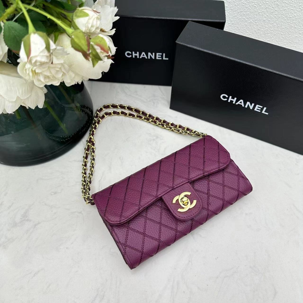 Chanel chain crossbody bag diamond and litchi cowhide purple 50098 size: 19*10*3.5㎝