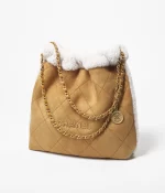 CHANEL / CHANEL 22 HANDBAG Shearling Suede Lambskin & Gold-Tone Metal Beige & White