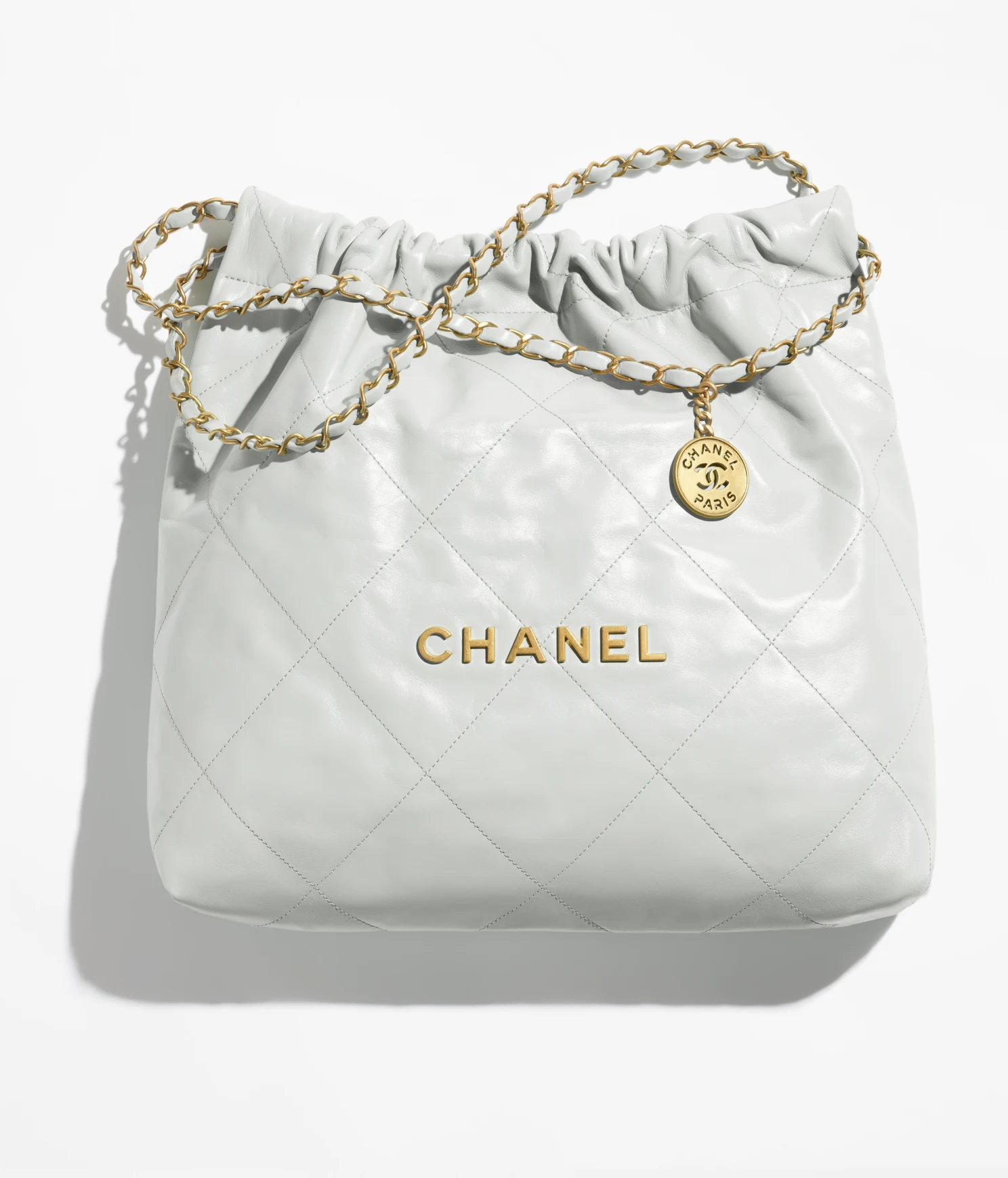 Home BAGS CHANEL-BAG CHANEL / CHANEL 22 HANDBAG Shiny Calfskin & Gold-Tone Metal Light Blue