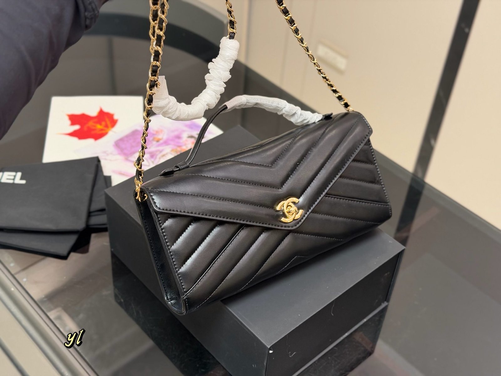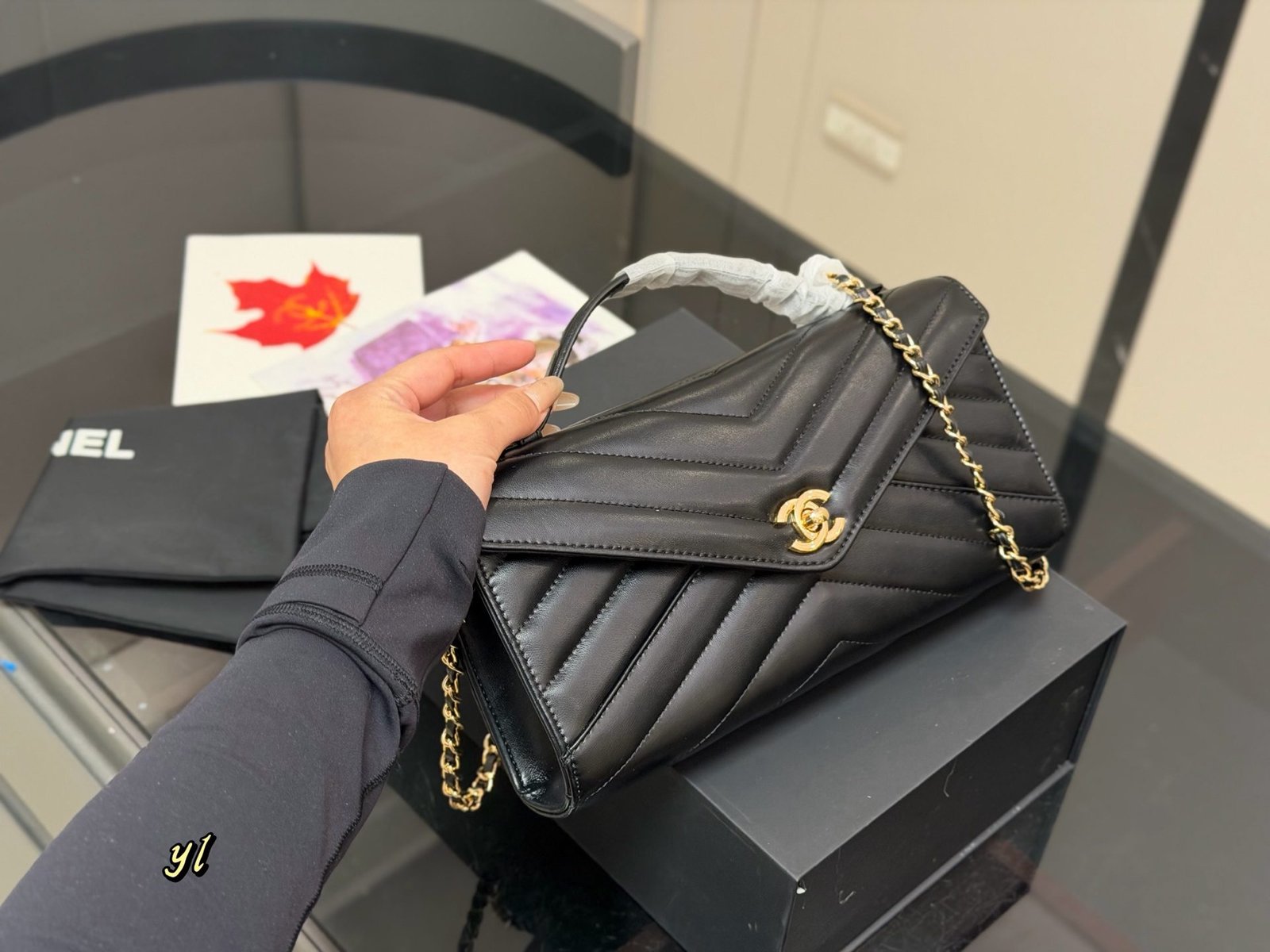 This bag features sleek V-shaped chevron quilting as its core design element, paired with an exquisite top handle and iconic interlocking CC hardware. Balancing glamour and practicality, it is the perfect statement piece for dates, parties, and daily commutes.